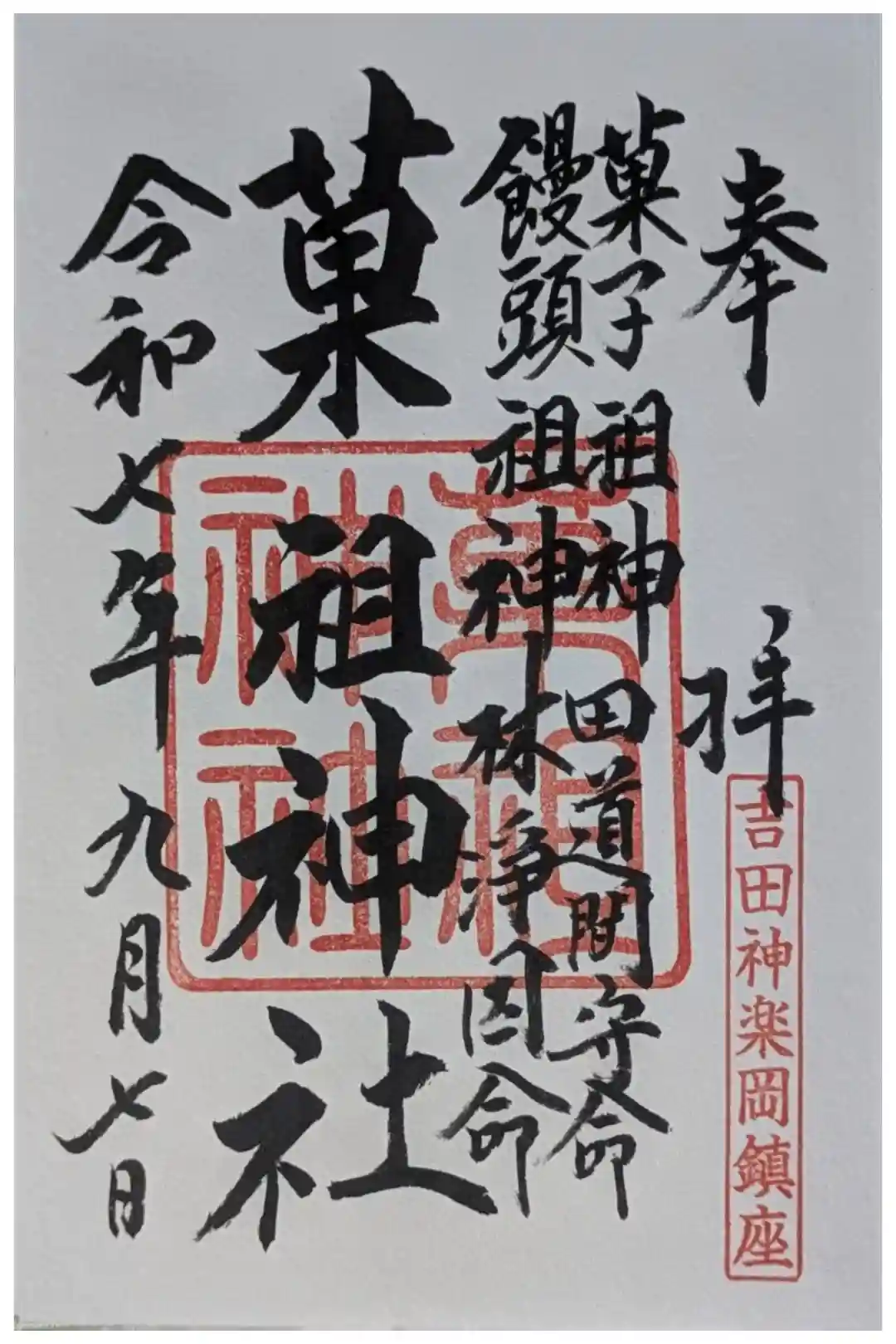 菓祖神社(吉田神社境内社)の限定御朱印の情報を書き込む
