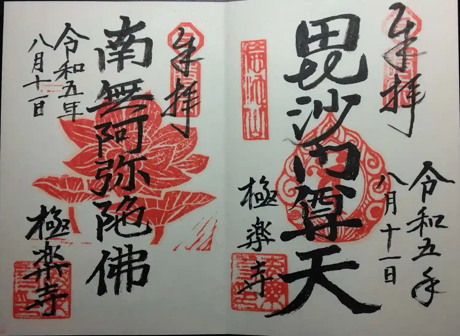 通常の御朱印です。左は、お寺としての御朱印。右が通常のご本尊の御朱印です。
