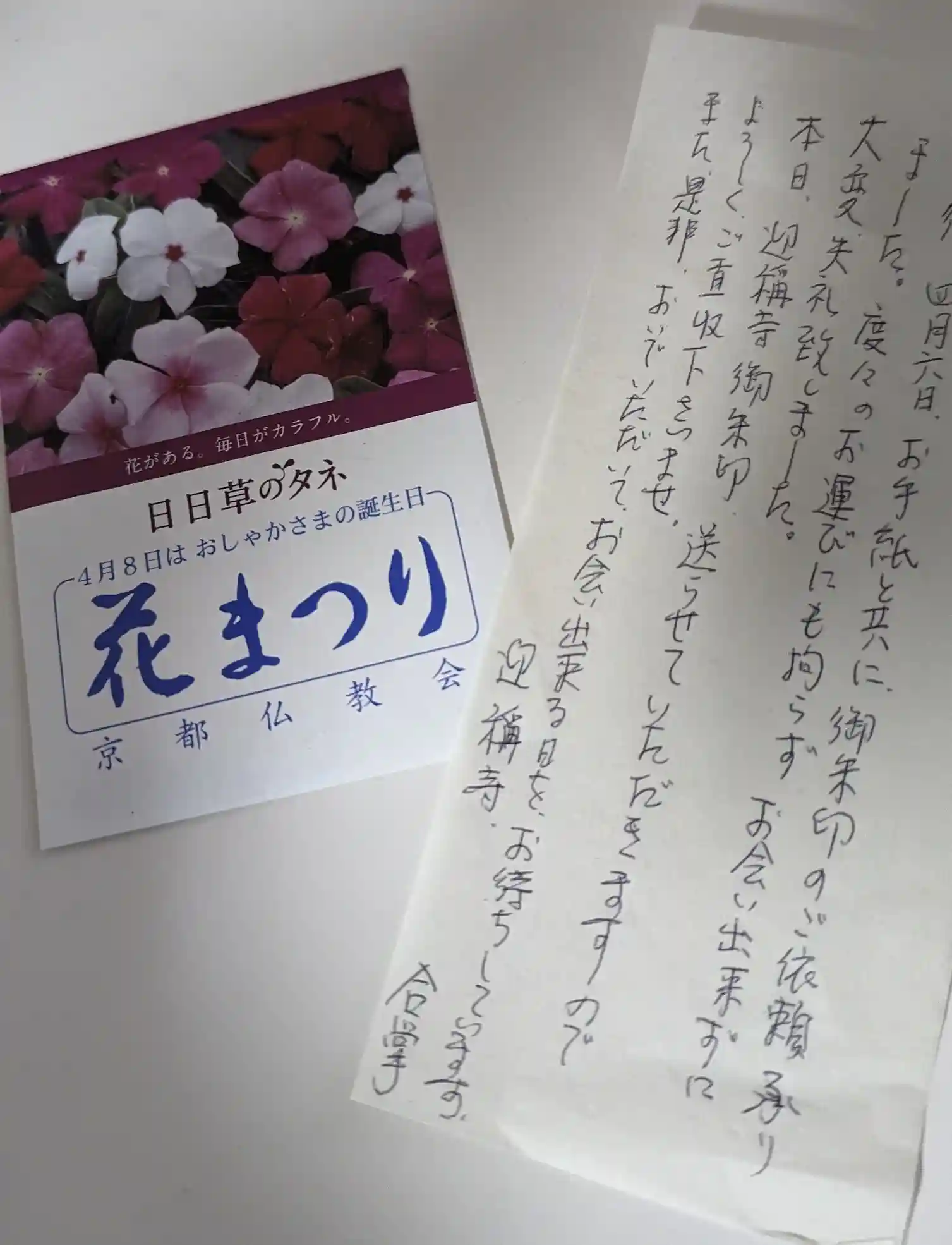 追伸:参拝時にスマートレターにお手紙と時宗道場御朱印のページ、志納金を一緒に投函しておきましたら郵送で御朱印を返送していただけました🤗手紙とともに花まつりの日々草の種も同封されており植えてみようかと思います😊