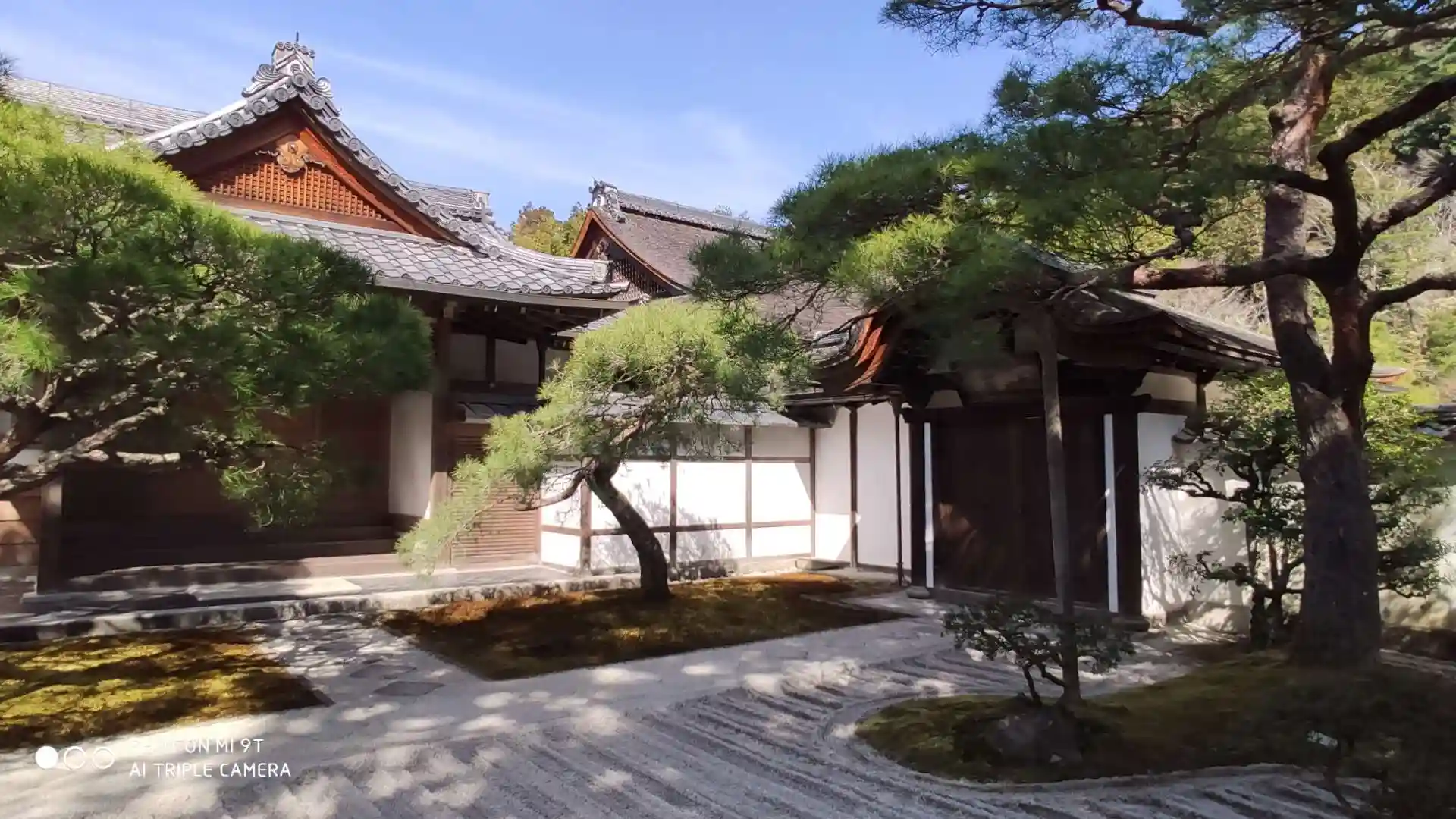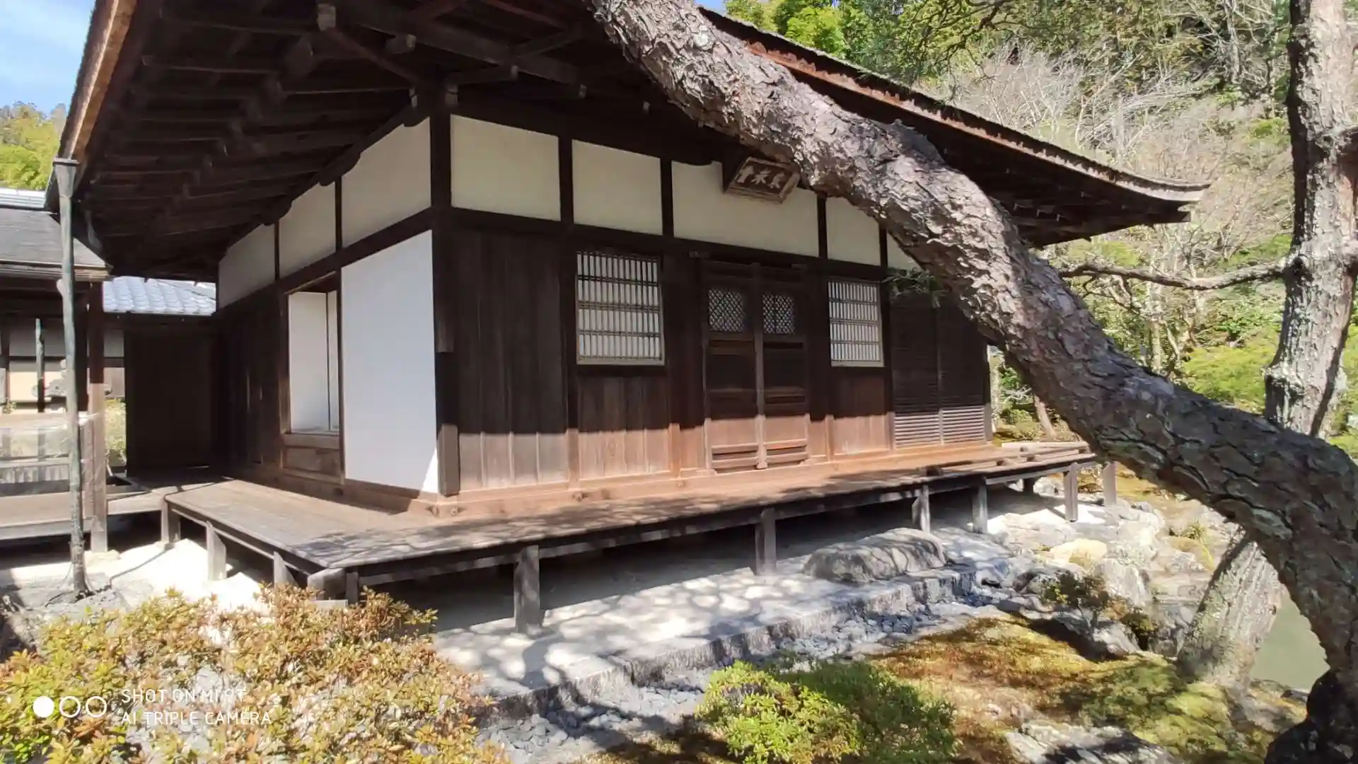 庭、山、寺、コントラストがすごい