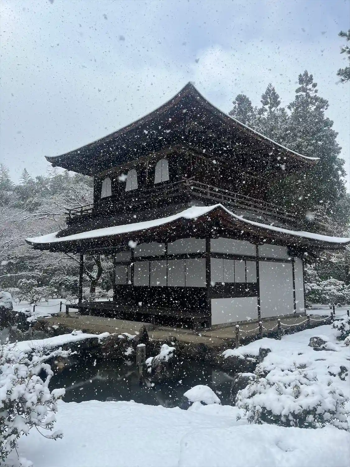 銀閣寺は大人っぽく錆びているけど、雪が降っていたので少し光っているように見えました!