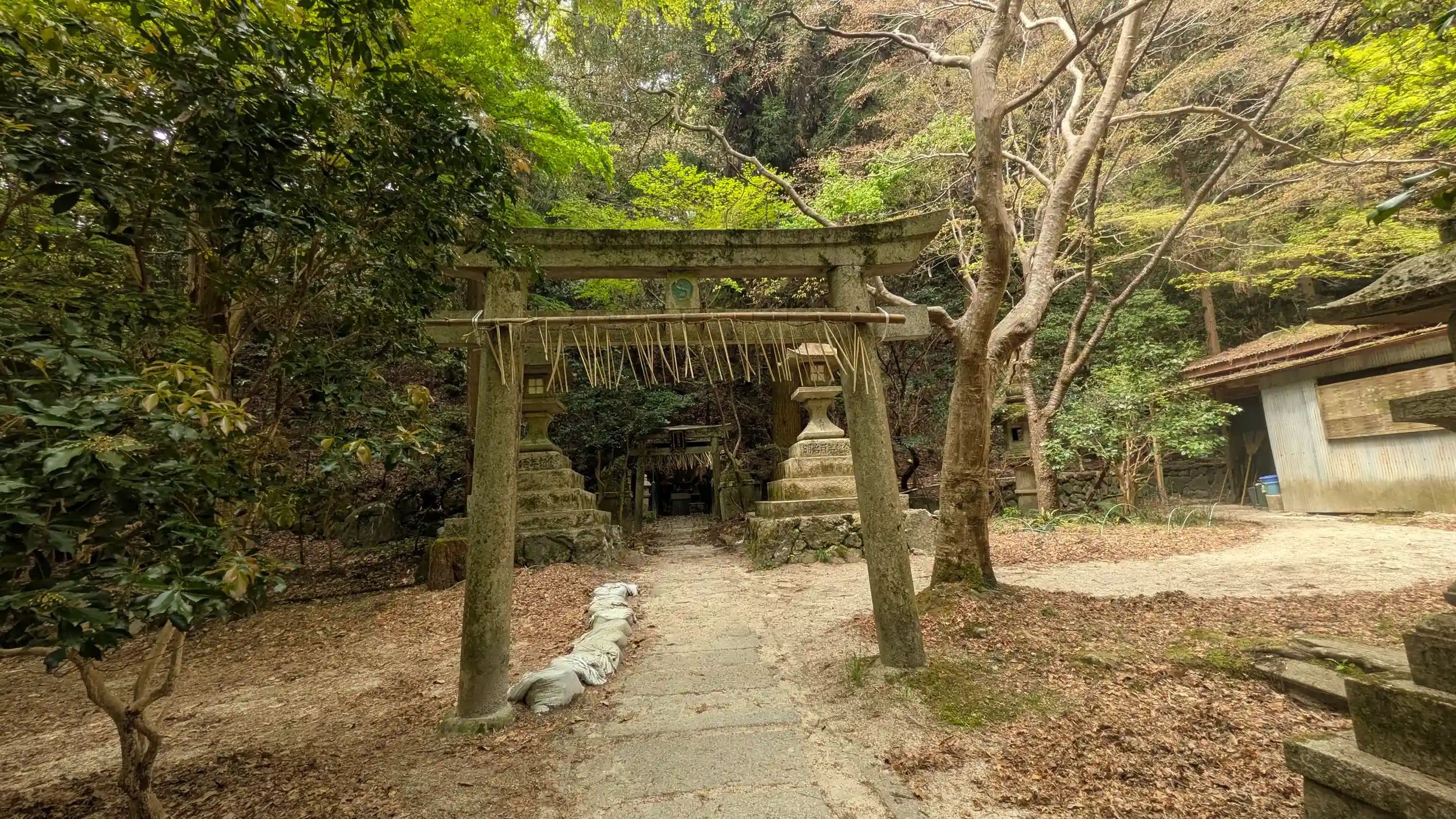 前回断念した大山祇神社へ。バプテスト病院駐輪場の横にある京都トレイルの登山口からお詣りへ。結構山の中腹ぐらいなのかな?と覚悟していたら意外とすぐでした😅鳥居と小祠の組み合わせが二柱あり、どちらも地龍大明神とありましたが狛犬がいる方が大山祇神で社務所奥の木花咲耶姫神とあるのが摂社なのでしょう。社務所は外から鍵が掛かっており、例祭の時ぐらいしか使われないのでしょうか?京都トレイルのハイカーは通過するのでしょうがお詣りされてるかは別ですからねぇ・・・😅