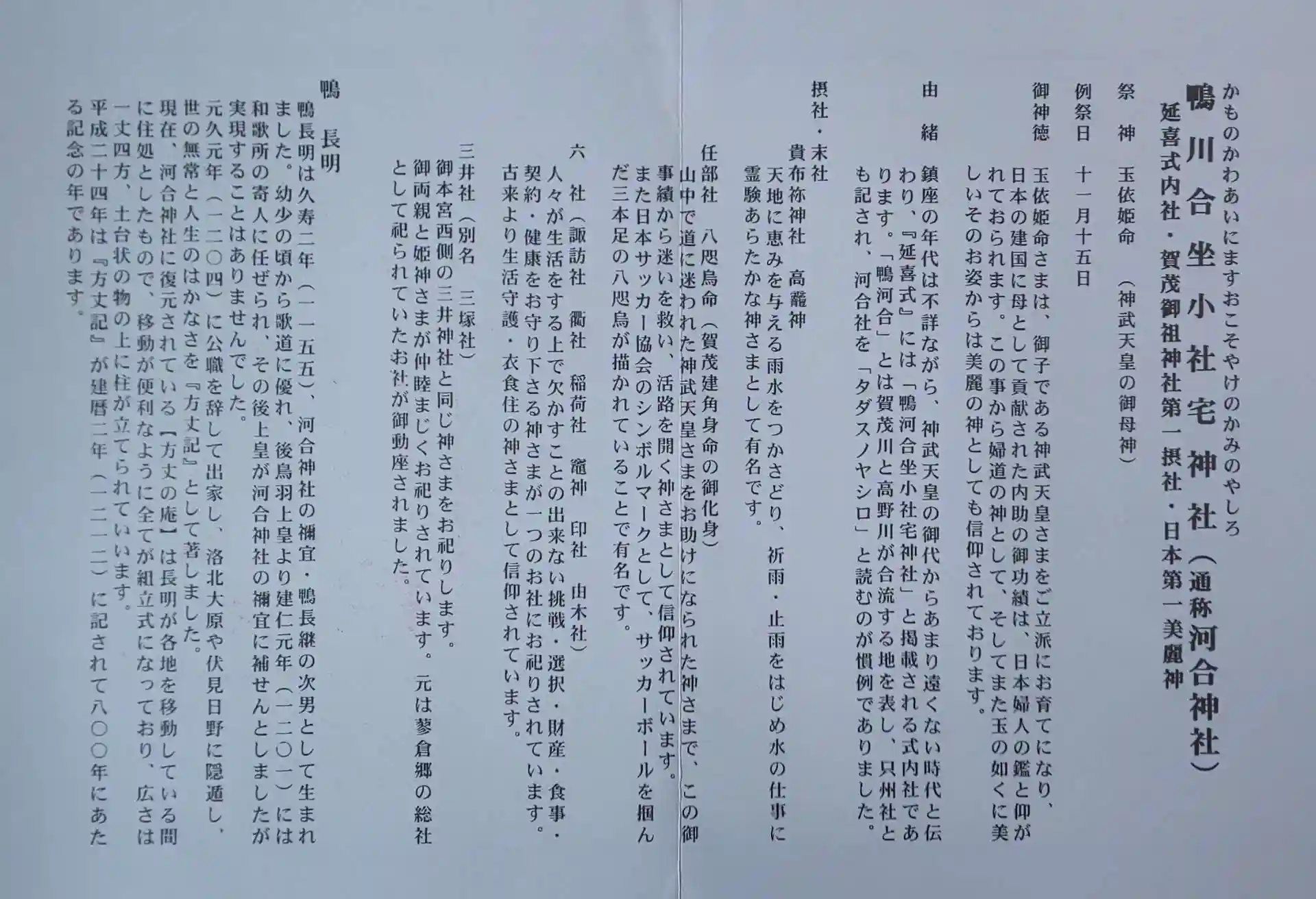 かわいじんじゃ(かものかわあいにますおこそやけのかみのやしろ)