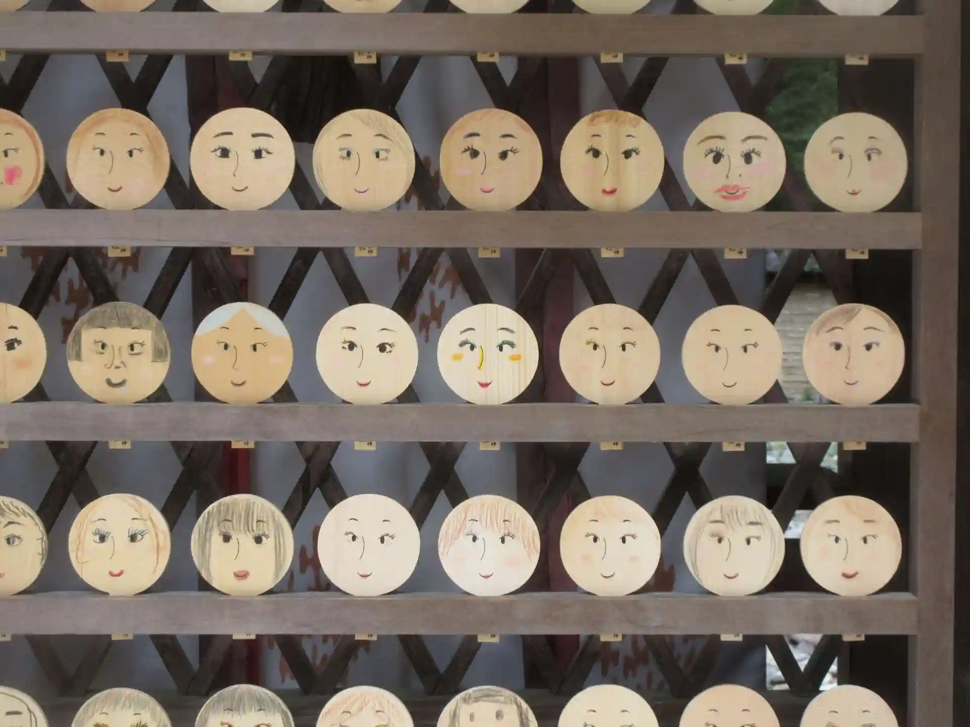 この神社の「名物」は鏡絵馬。参拝者が美人になれるよう祈願して思い思いに顔を描くわけです。この神社には何度もお参りに来たけれどさすがにそれはやったことがないなあ(笑)。