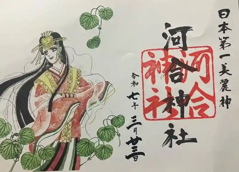 下鴨神社内、河合神社の「玉依姫命」の御朱印を拝受しました。イラストは漫画家・池田理代子さんのもので…