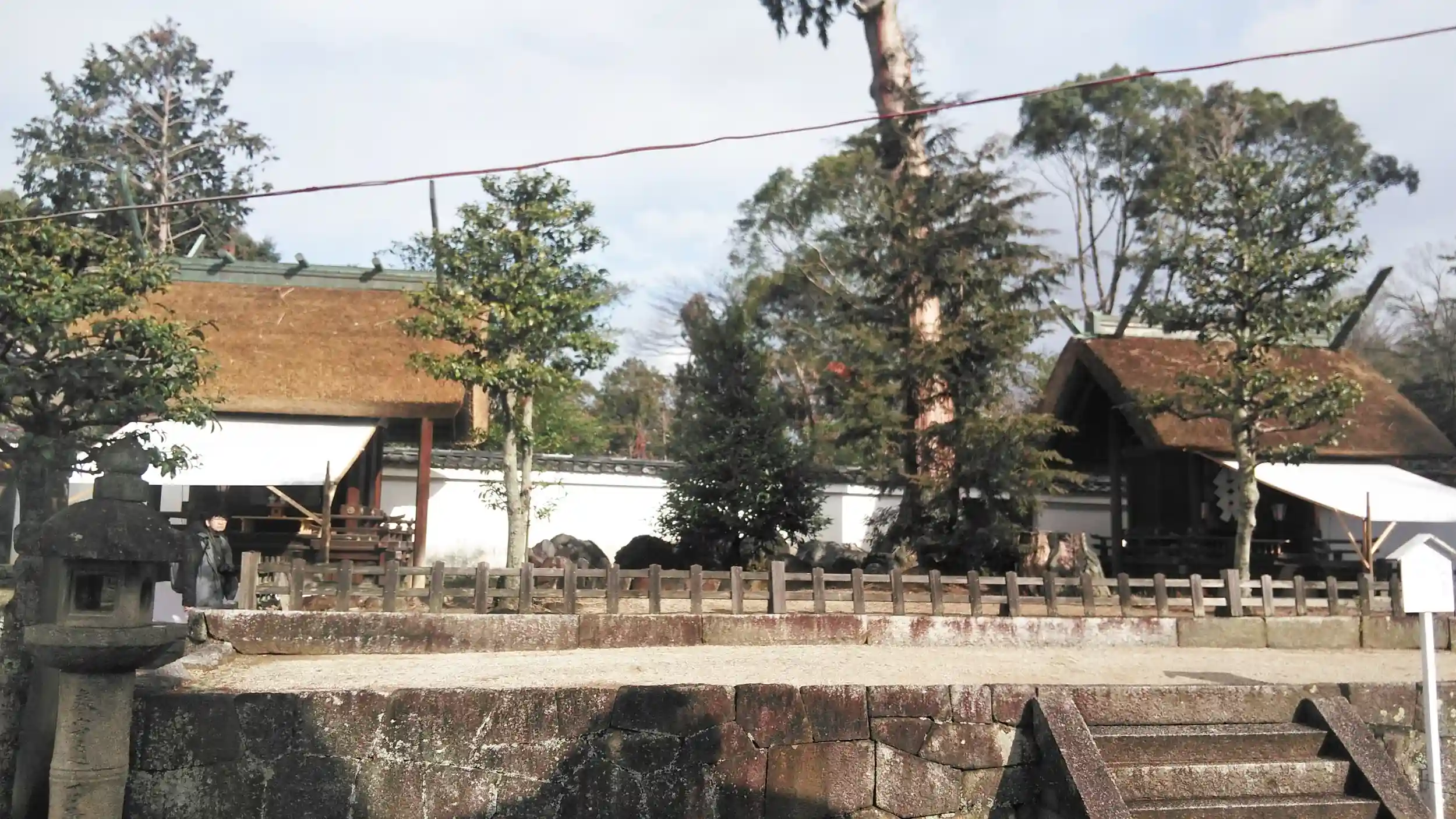 斎場所大元宮。神職さんが祝詞の最中。おわるまでしばし待つ。