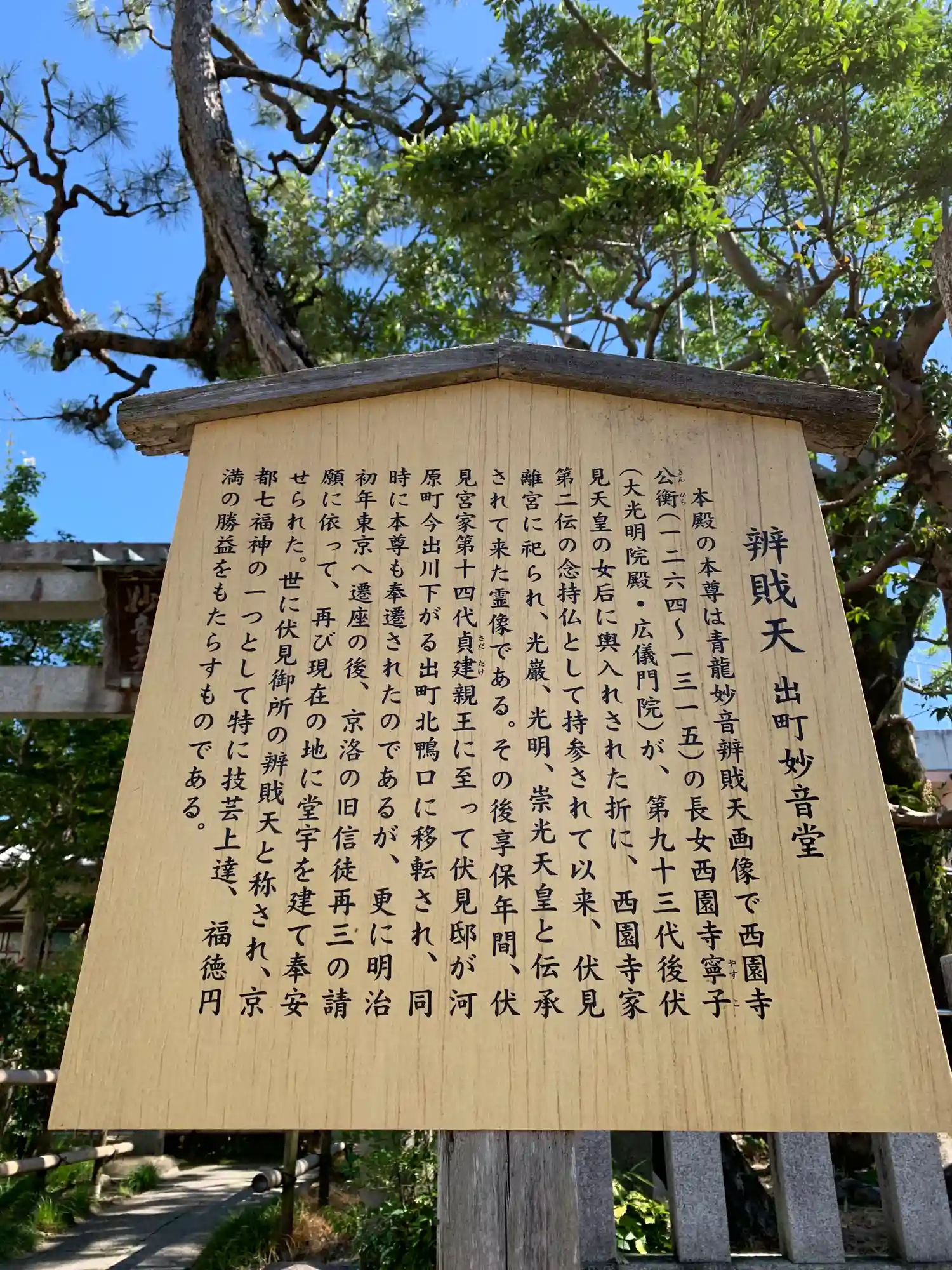 通称「妙音弁財天」。本尊は青龍妙音弁財天画像。1306年、西園寺安寧子が後伏見天皇女御に輿入れした…