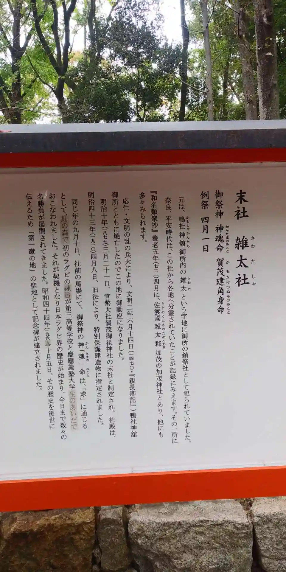 ラグビーの聖地として有名な神社です。