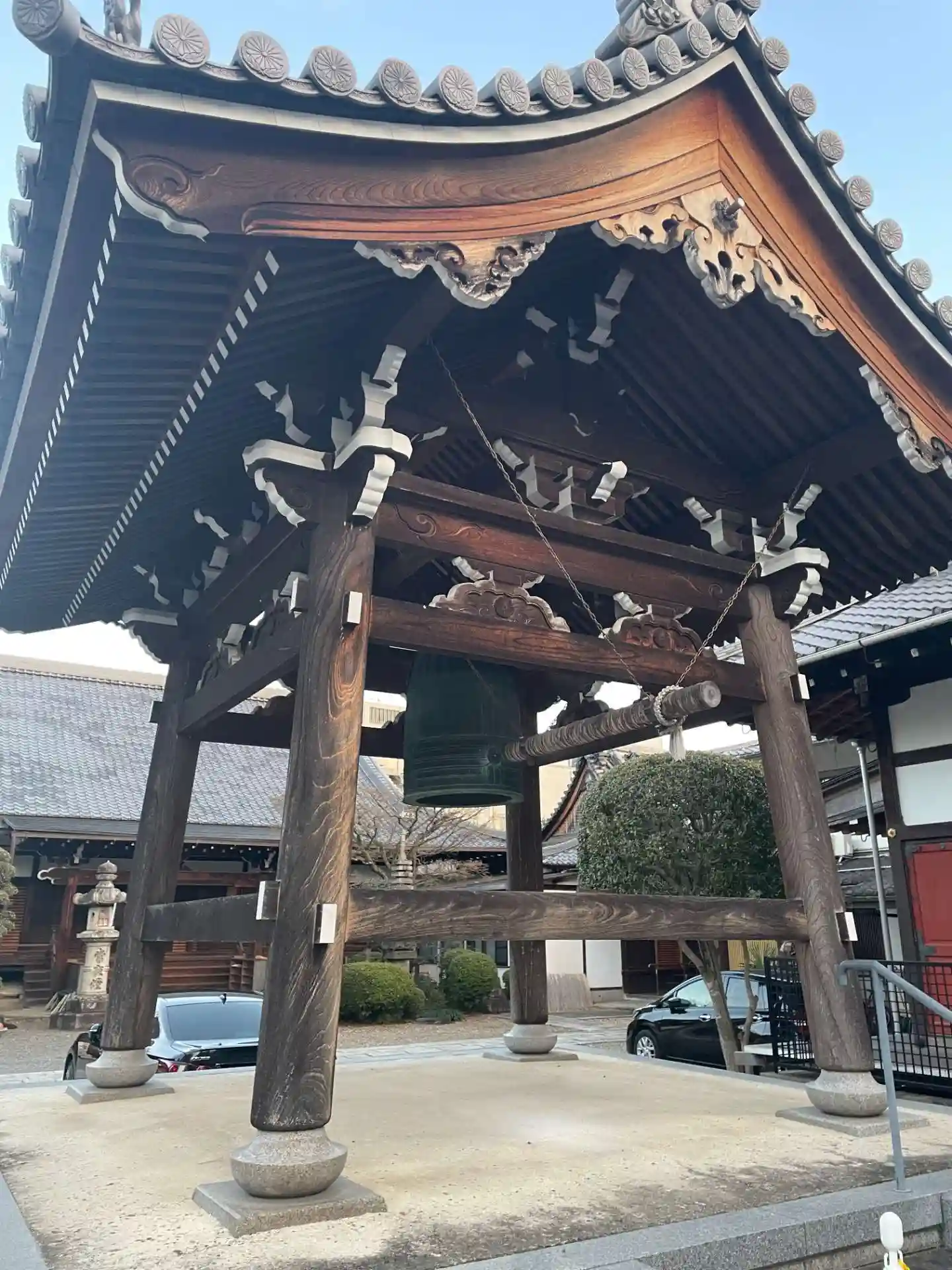 総門をくぐって右側にある<鐘楼堂>。その背後は<阿弥陀堂>。