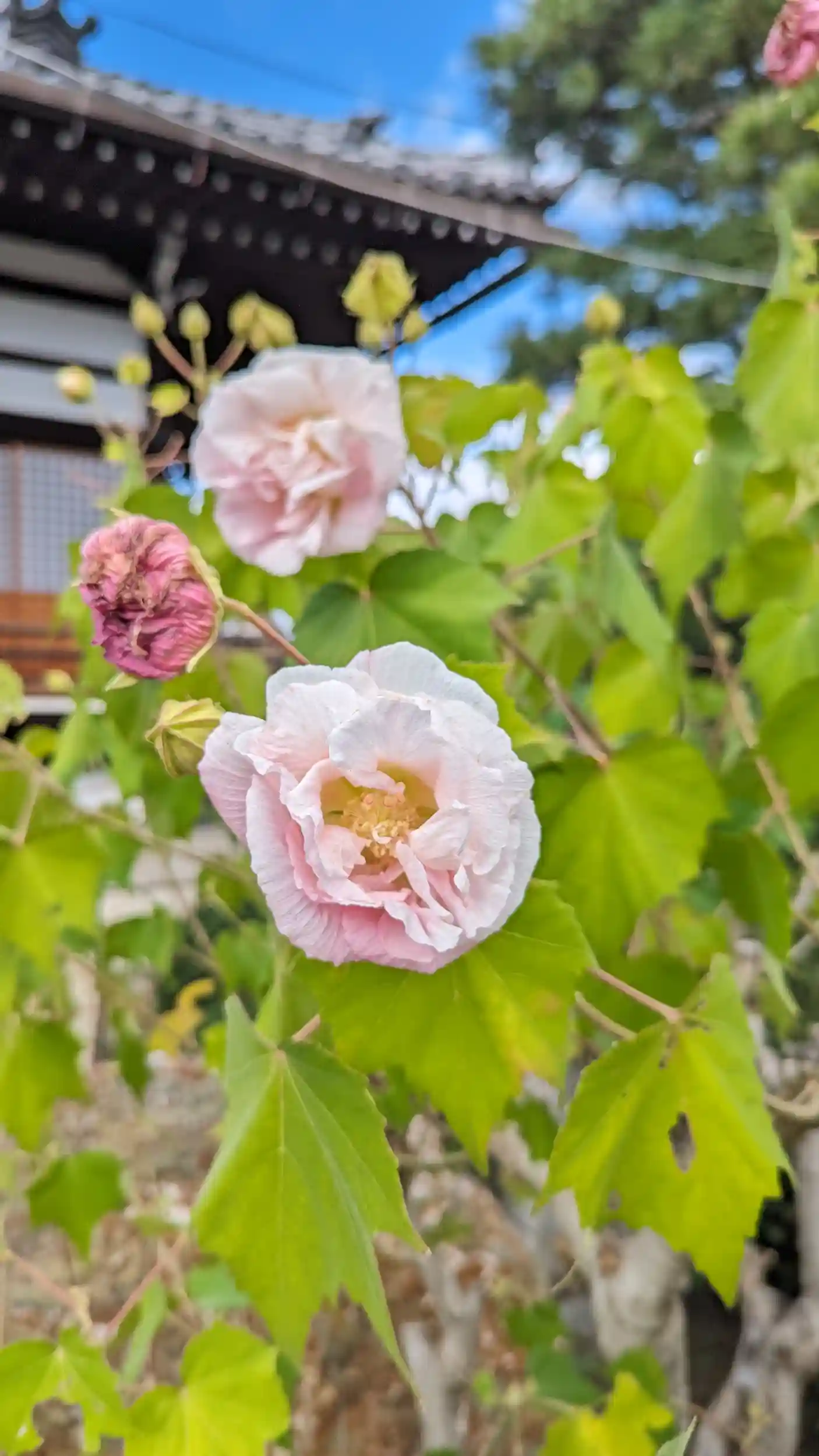 法乗院帰りに本満寺に様子見。七面堂隣の楓は青いまま萎れてきておりやはり秋の暑さの影響を象徴するような感じになってました。本堂前にはまだ酔芙蓉が咲いており、山茶花がポツポツ咲き始めてるのが唯一晩秋を感じさせてくれました。妙見さんの前には春にもいたにゃんこが🤗七面堂の前にも茶トラの子がいてそろそろ猫寺の称号を与えても良いかもですね😊