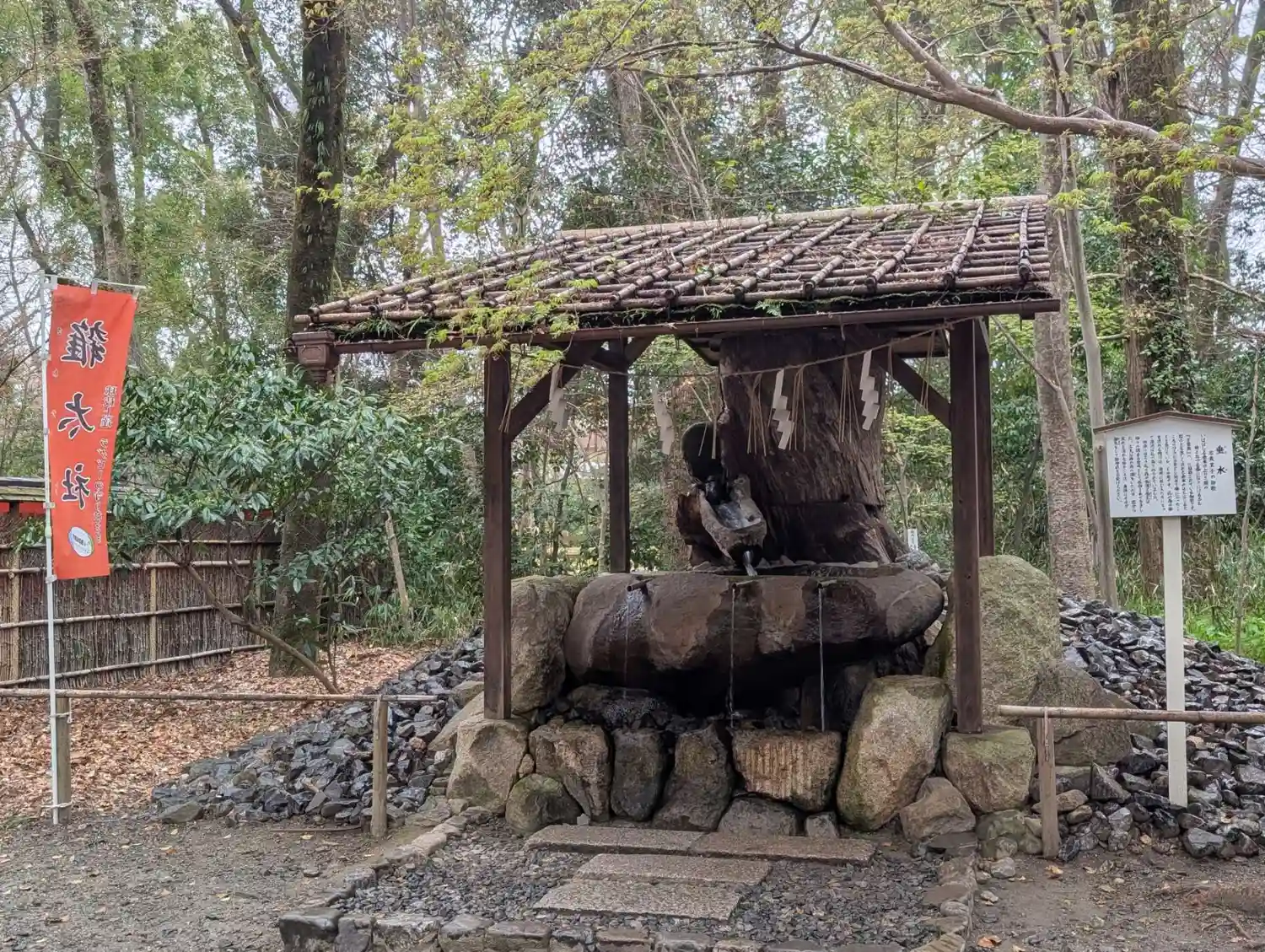 バス停「下鴨神社前」で下車して、すぐ参道入口の看板あり、わかりやすかったです。