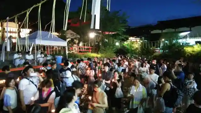 みたらし池の冷たい水に足をひたしながら蝋燭で献灯する納涼祭。