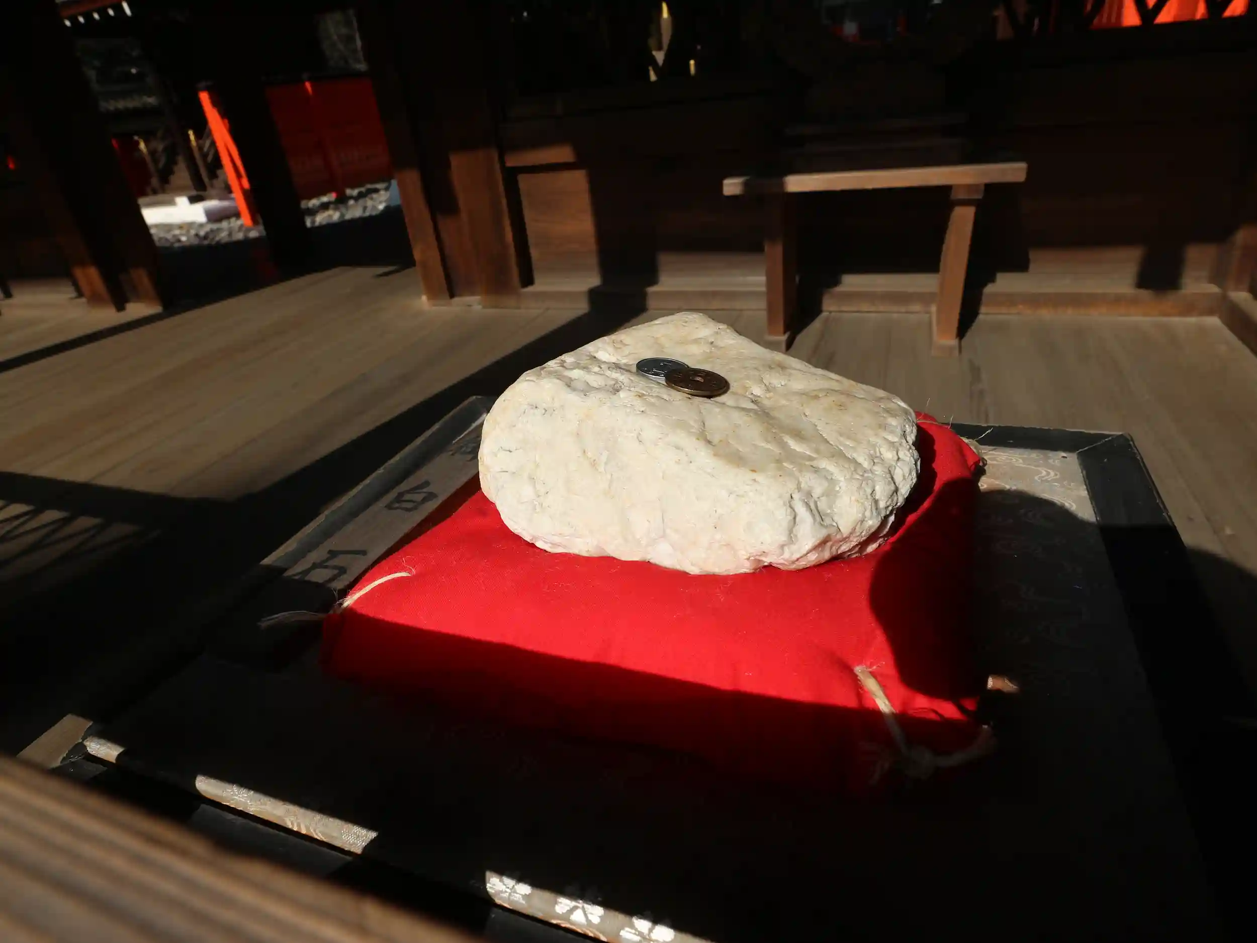 河合神社にて。カメラの影が横向きのトラが手を舐めてる影絵のように見えました。(個人の感想です)