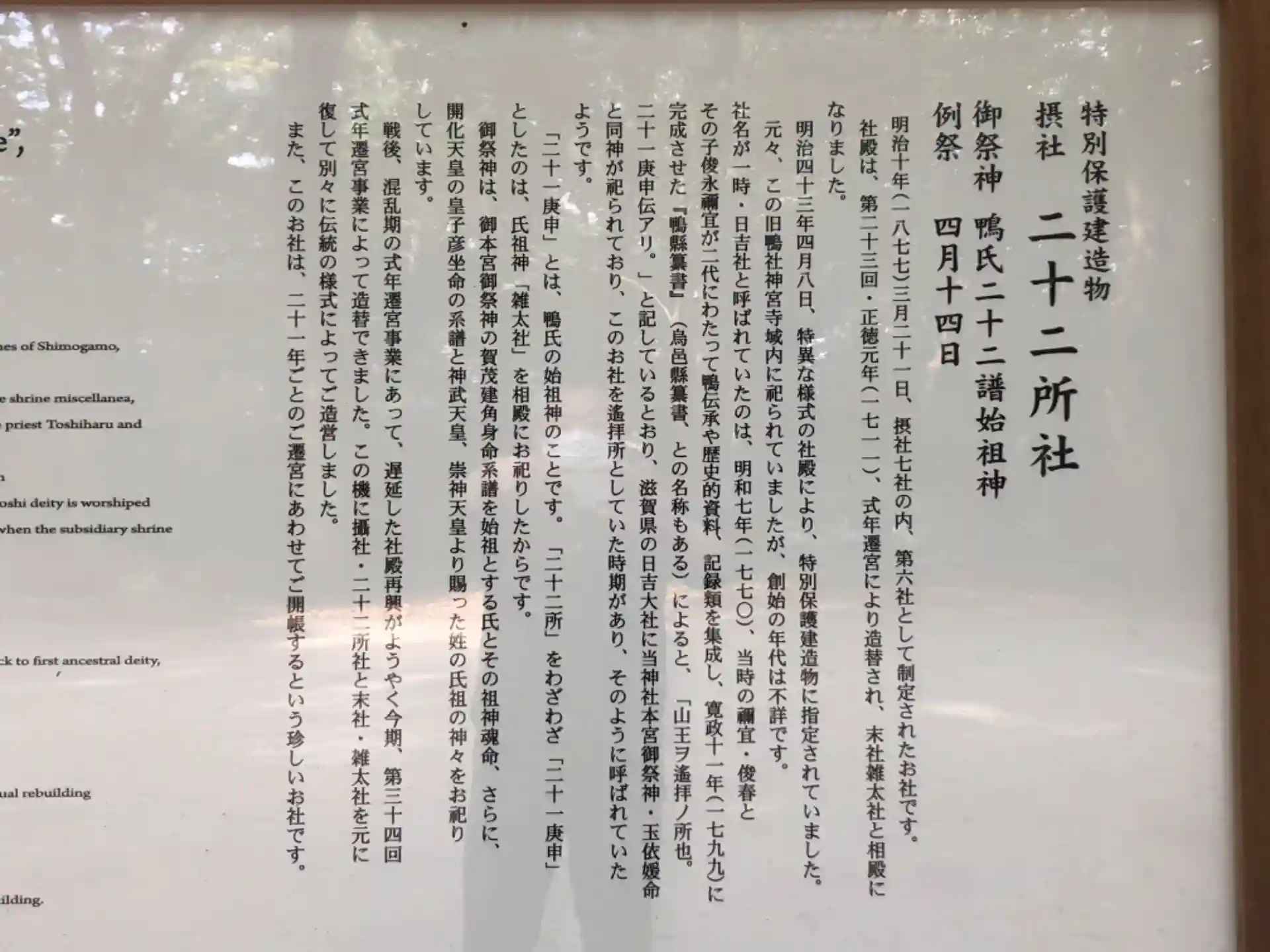 賀茂斎院御代斎王神霊社由緒書き