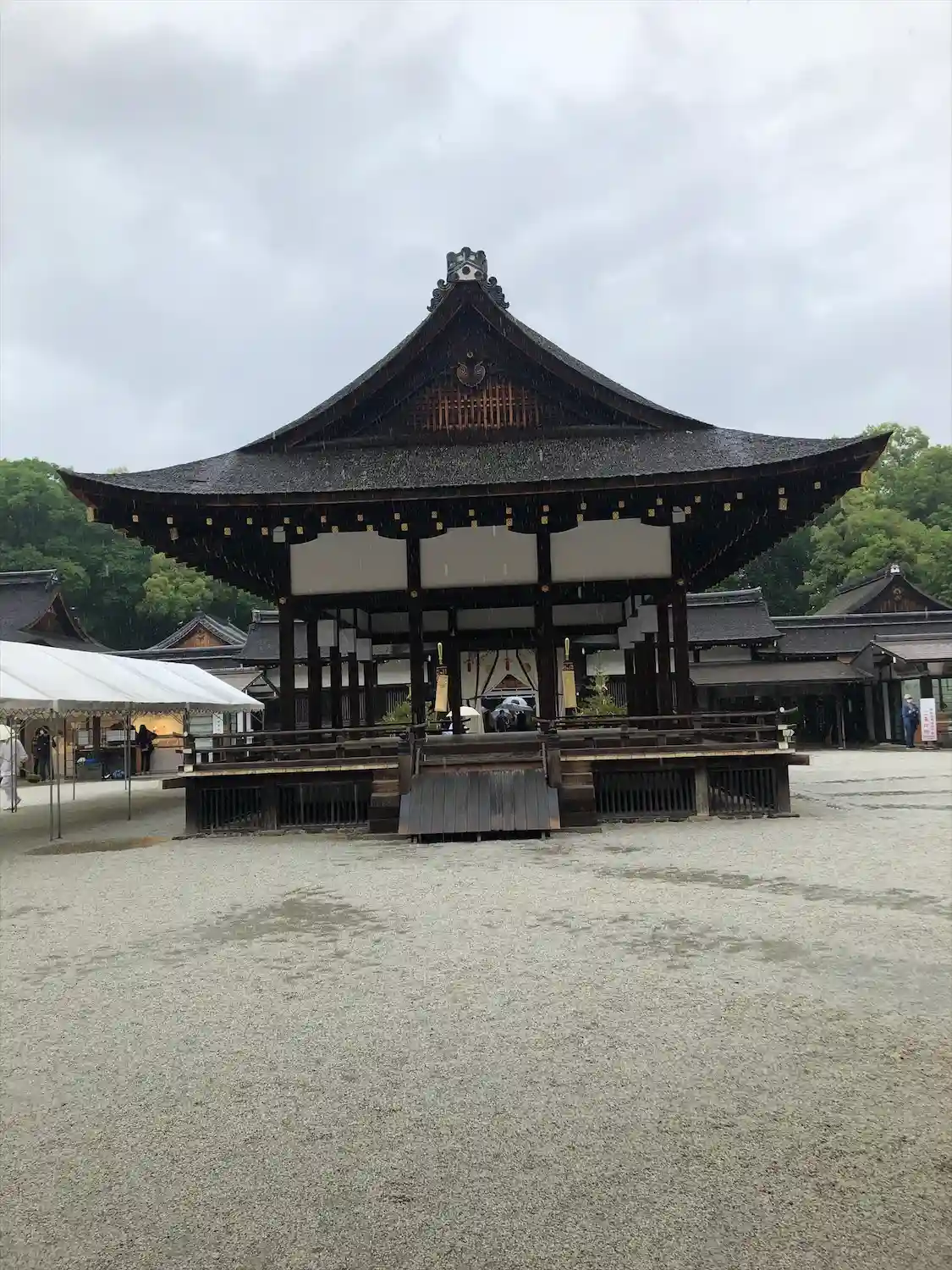 上賀茂神社から移動して初めての参拝。雨が少し小降りになって、参拝客も増えていました。