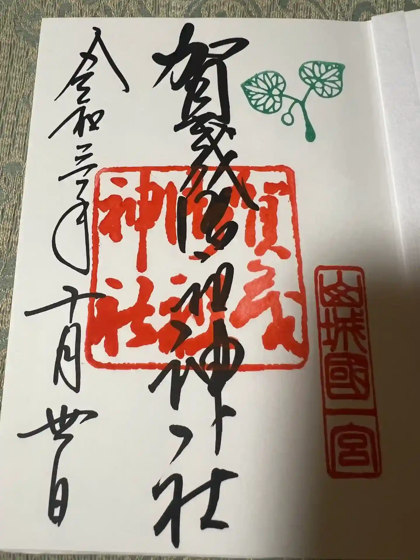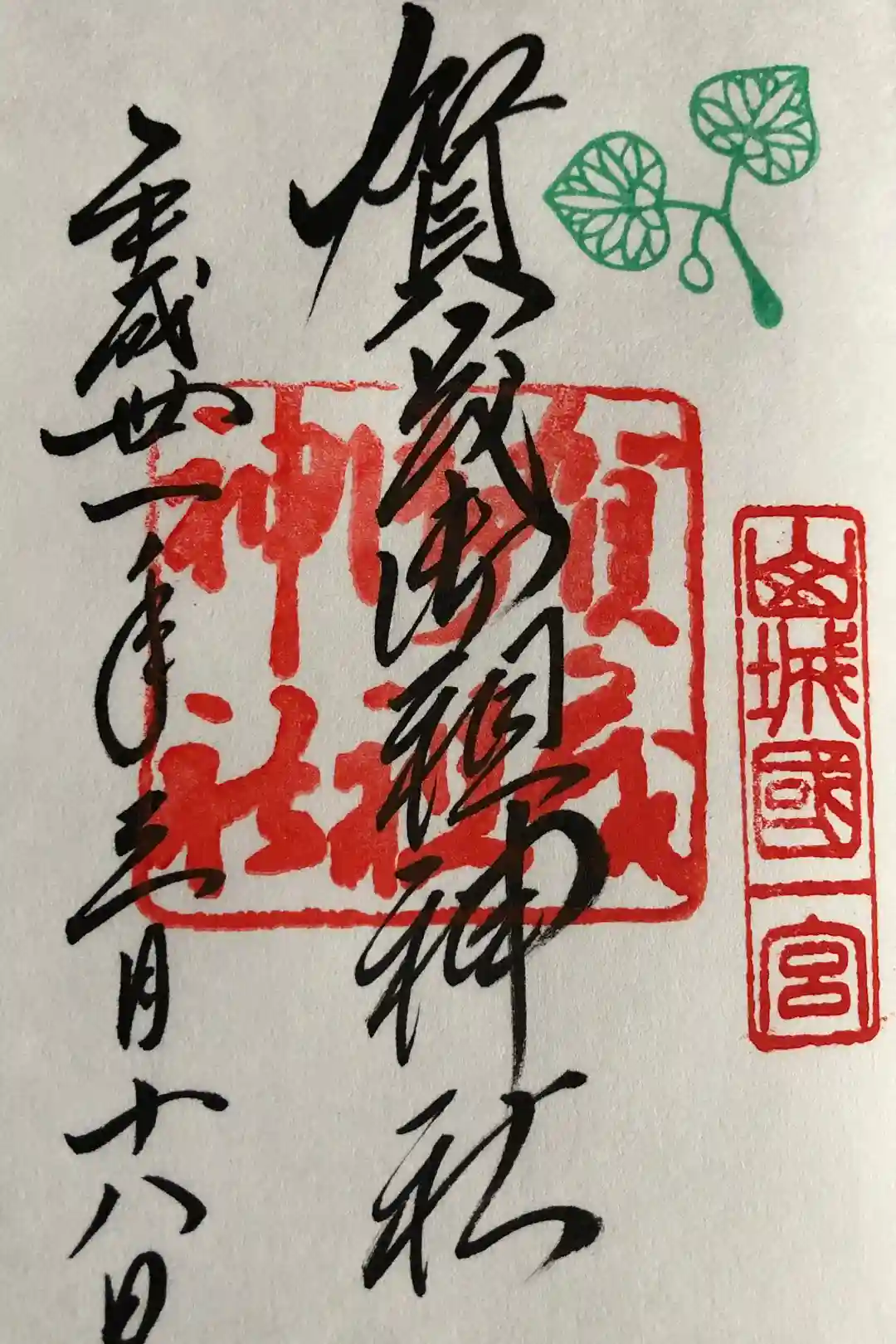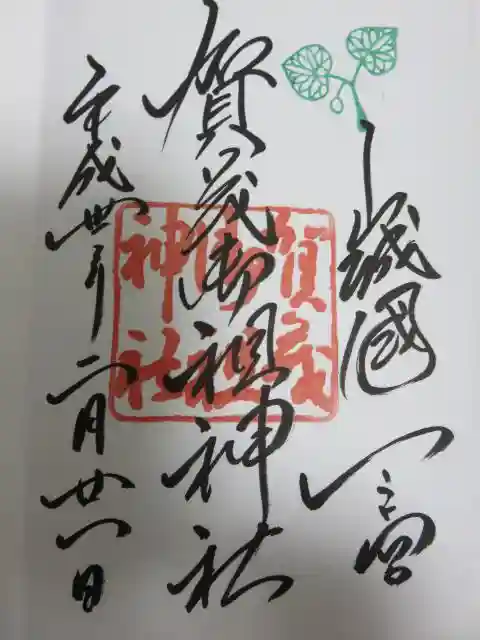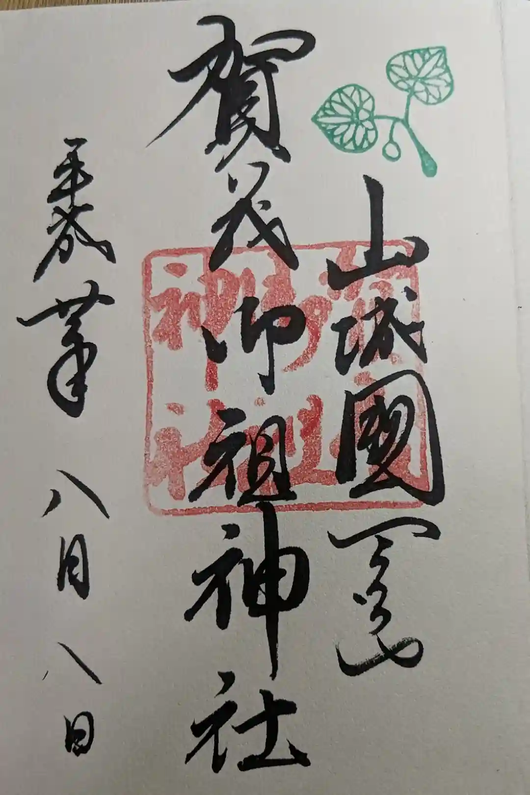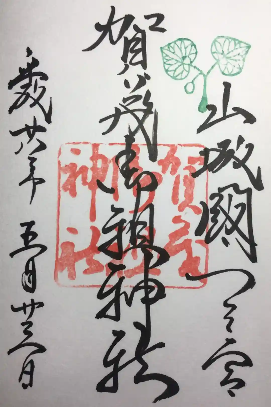 御朱印の右上には、御神紋である賀茂葵(双葉葵)をモチーフにした印が、緑色で押されています。