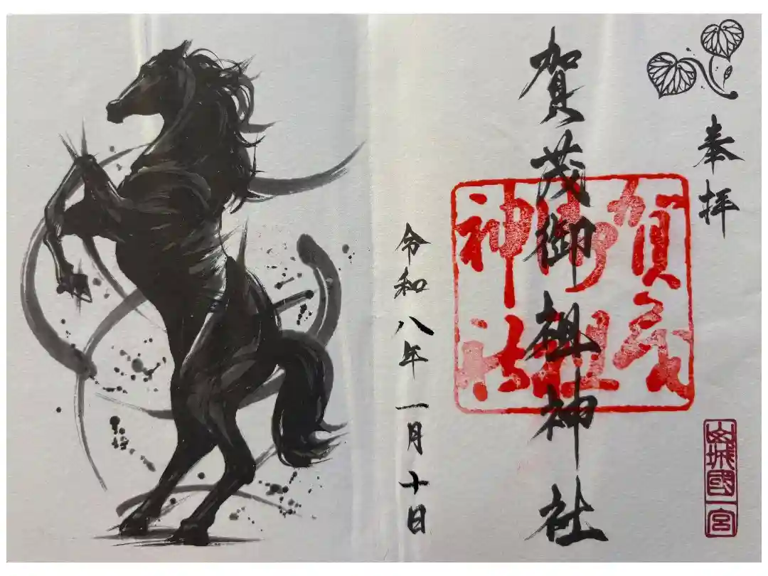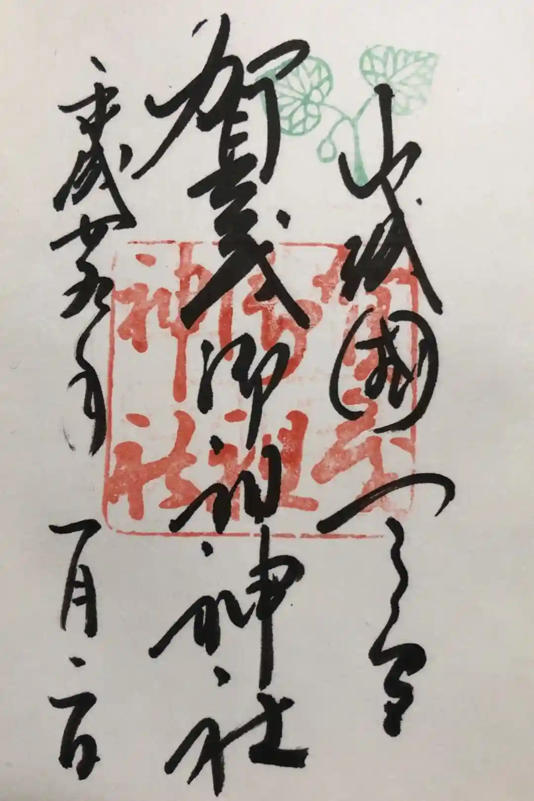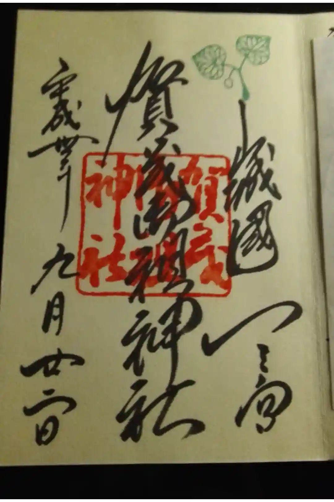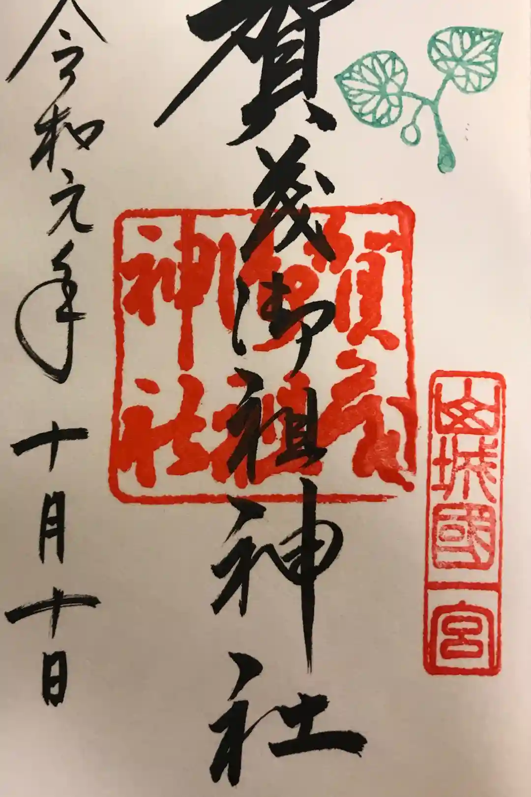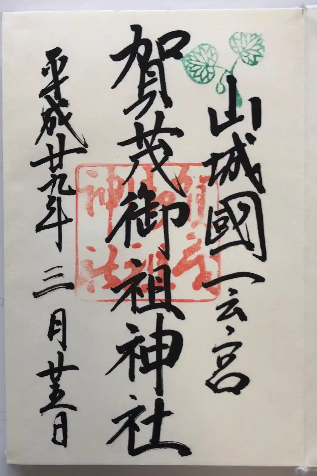 御朱印の右上には、御神紋である賀茂葵(双葉葵)をモチーフにした印が、緑色で押されています。