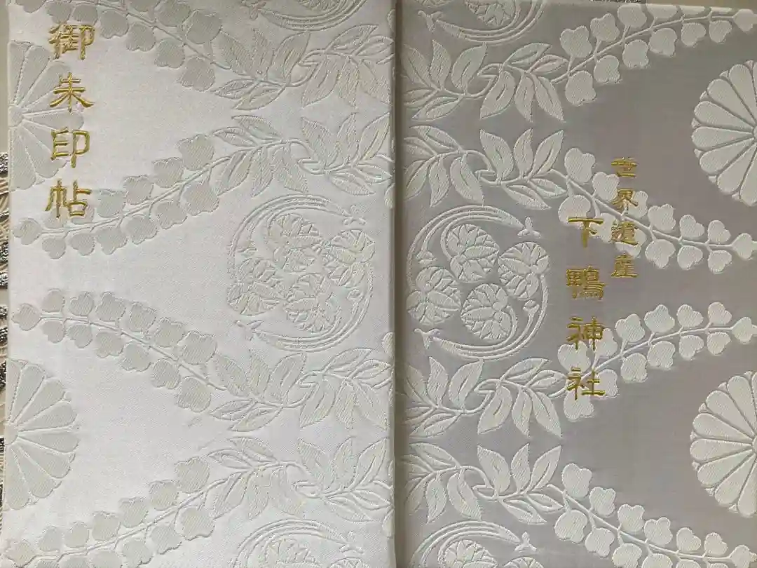 表面の左上に御朱印帖、裏面の真ん中に世界遺産下鴨神社の文字が入っています。