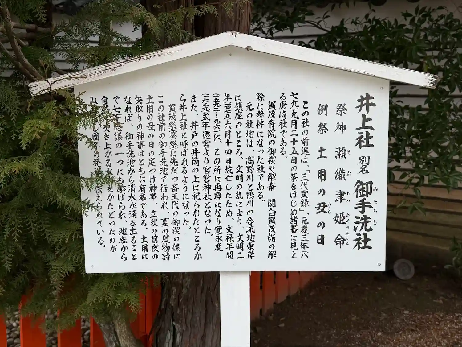井上社別名御手洗社由緒書き