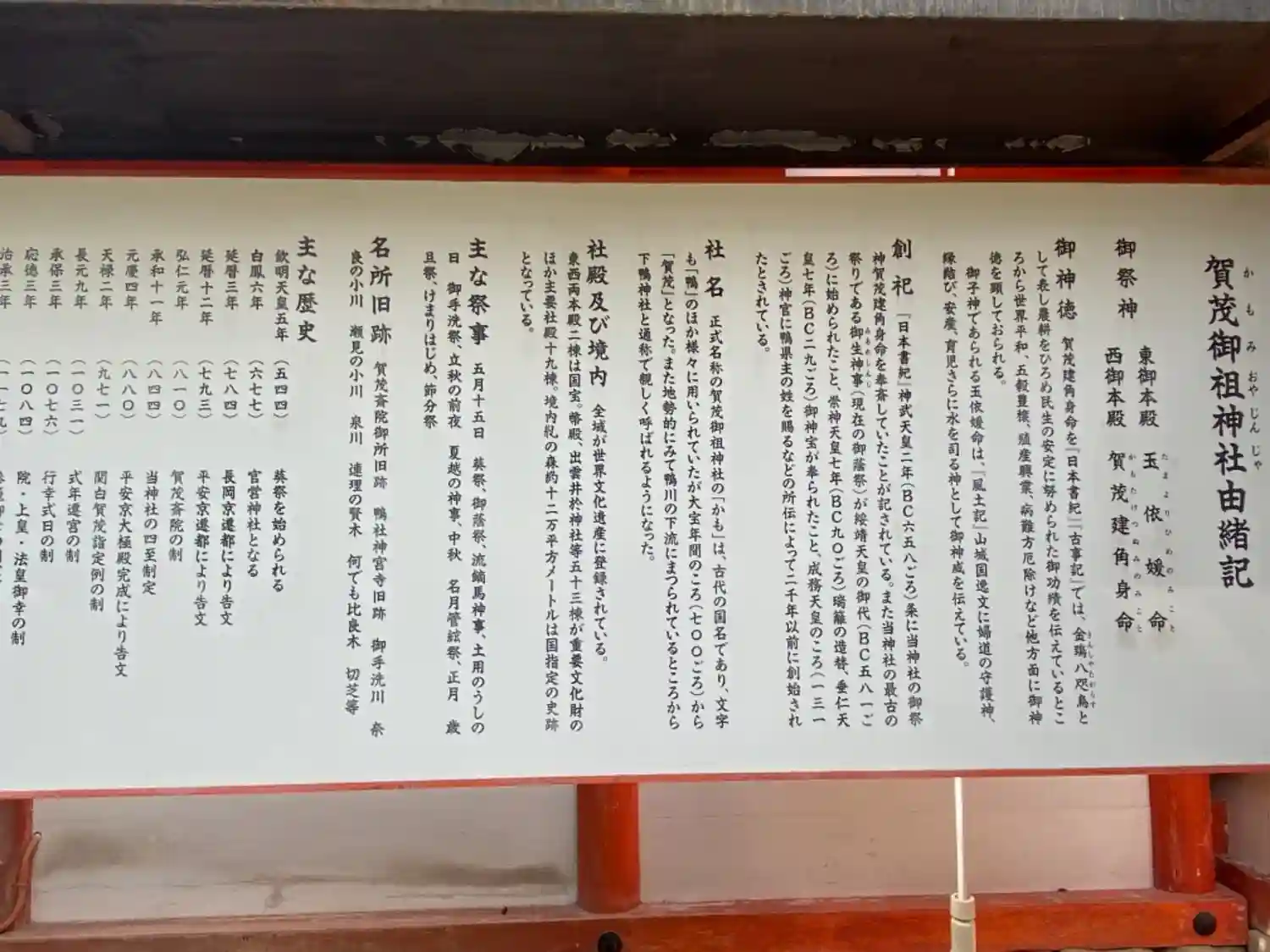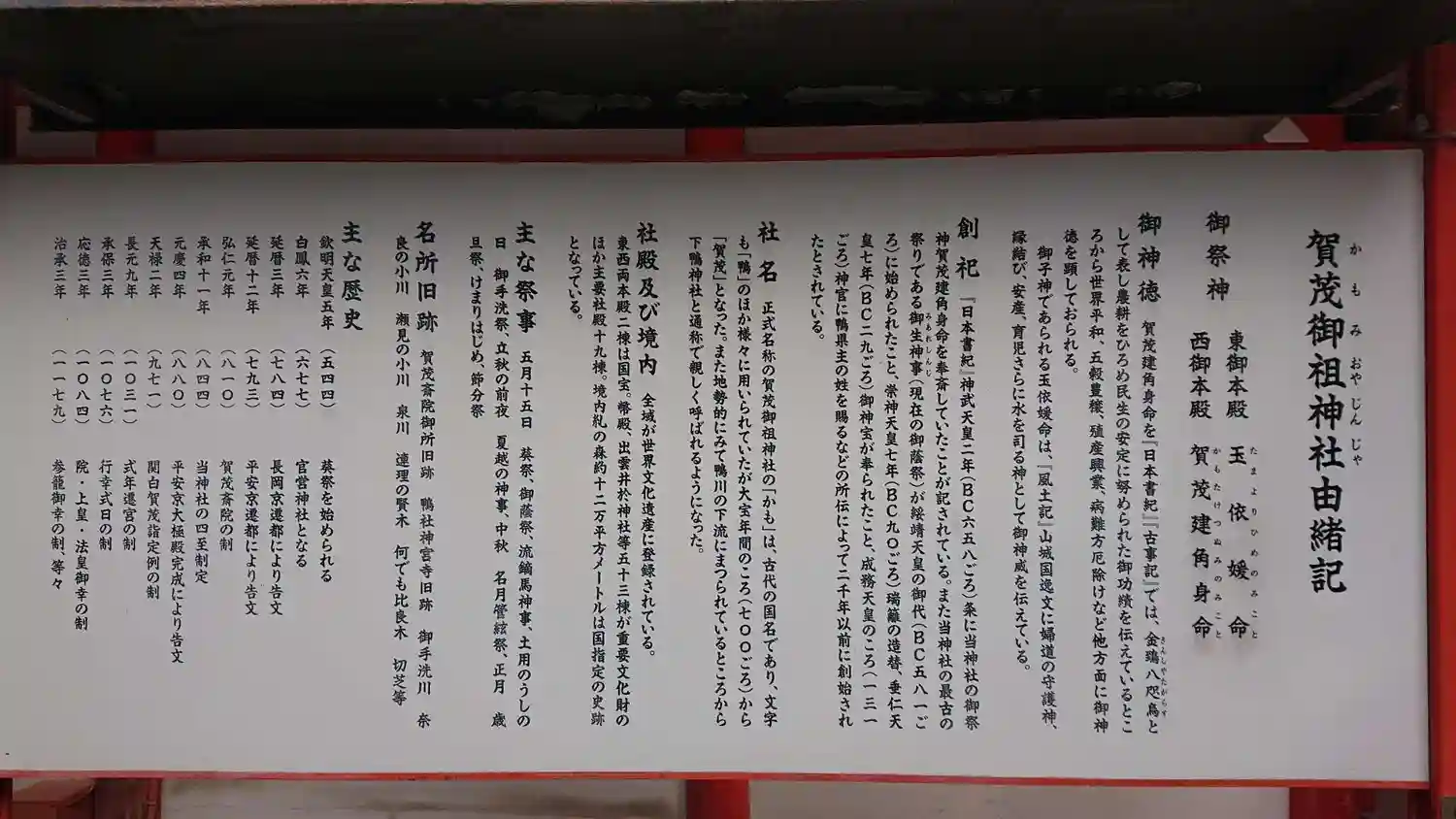 下鴨神社の御由緒書きです。