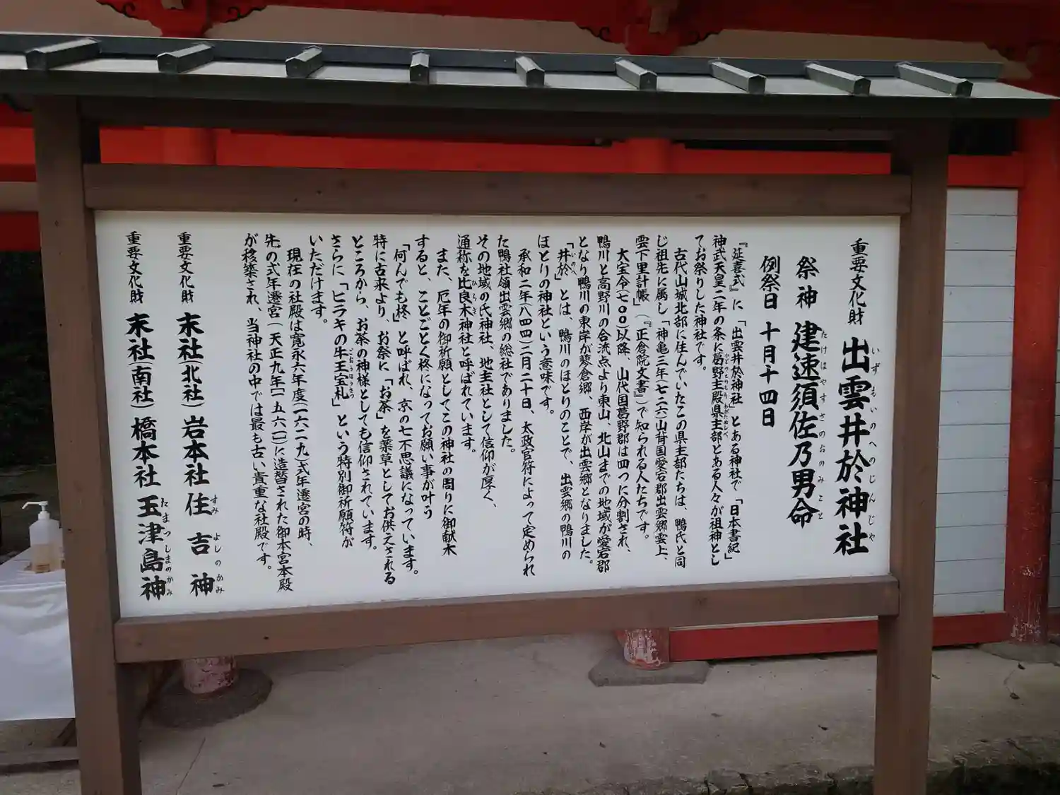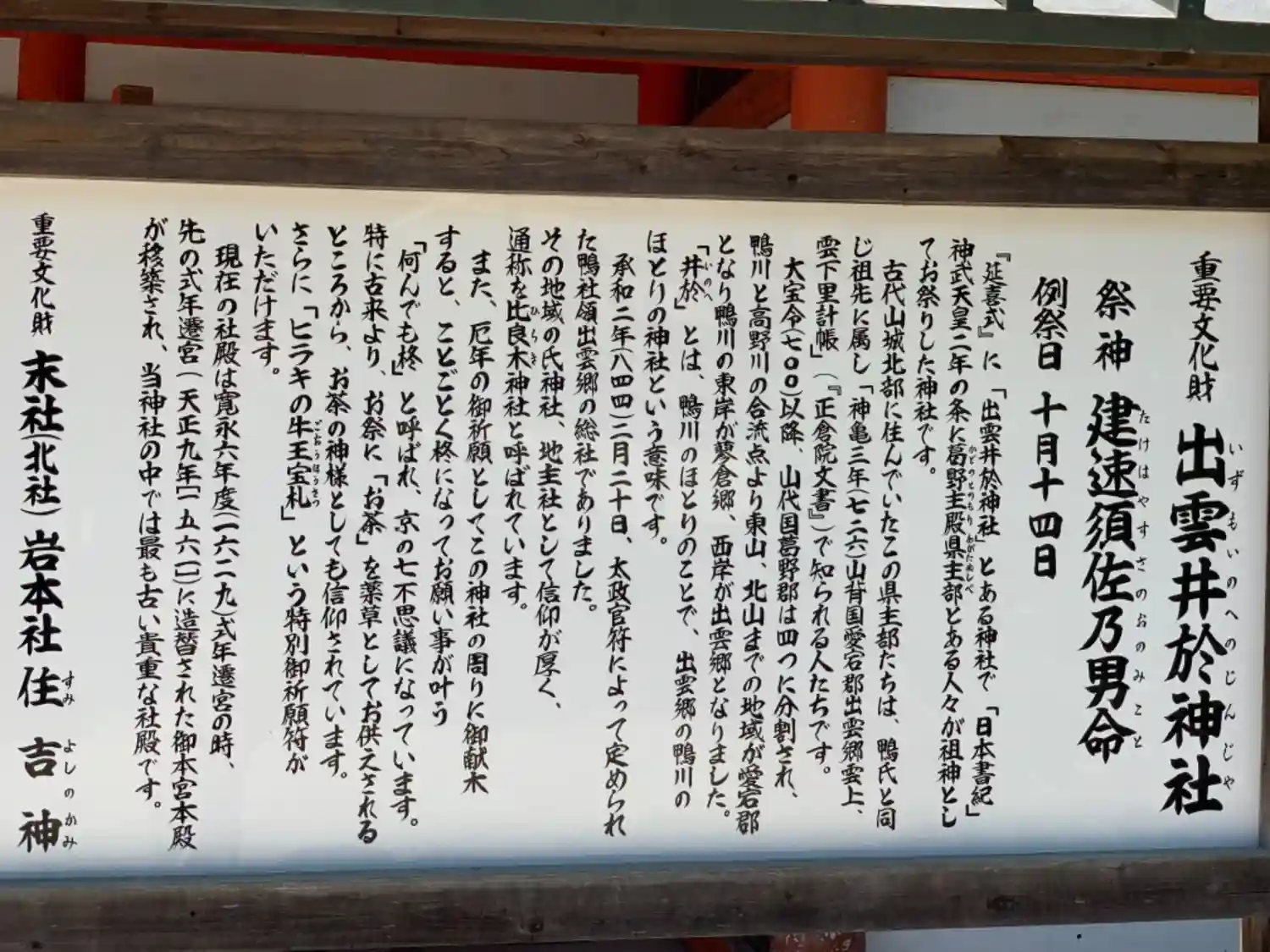 河合神社の御由緒書き。
