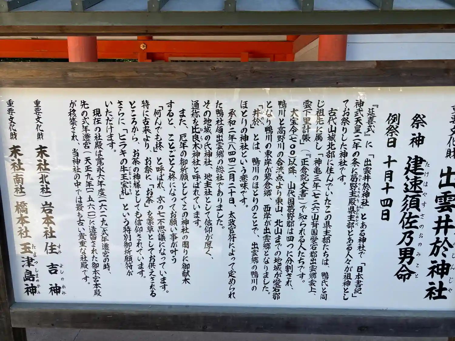 賀茂御祖神社(かもみおやじんじゃ)「下鴨神社」説明文