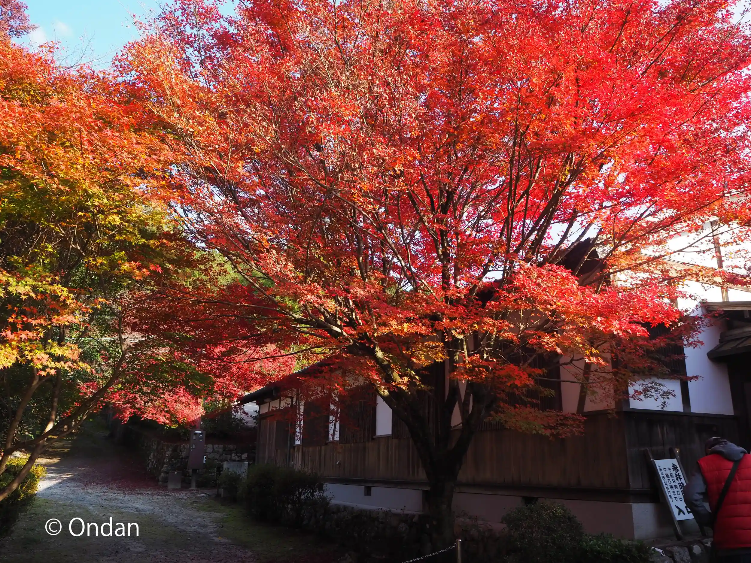 北門(受付)横の紅葉。真っ赤でした。