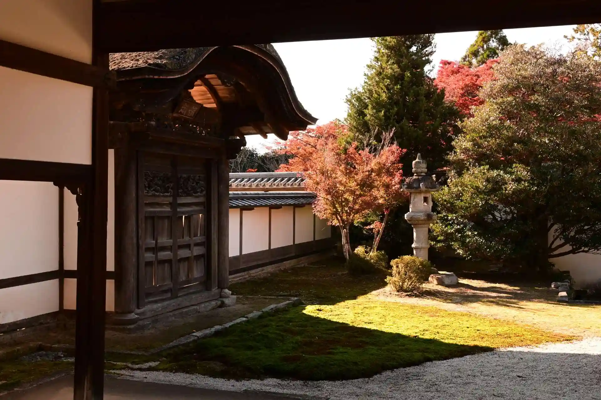 延暦年間(782-806)、伝教大師最澄により、鎮護国家の道場として比叡の地に創建されたのが曼殊院のはじまりとされます。その後、天暦年間(947-957)是算国師のとき北野天満宮が造営されると、是算国師が菅原家の出生であったことから、初代別当職に補され、以後明治維新まで曼殊院は北野別当職を歴任しました。天仁年間(1108-1110)に北野天満宮管理のため北山に別院を建立。その後御所内公家町に移転します。1656(明暦2)になり、桂離宮を造営したことで名高い八条宮智仁親王の第2皇子である良尚法親王が入寺され、現在の地に堂宇を移しています。この時に建てられた書院は、桂離宮と共通した意匠がみられことから「小さな桂離宮」とも呼ばれています。