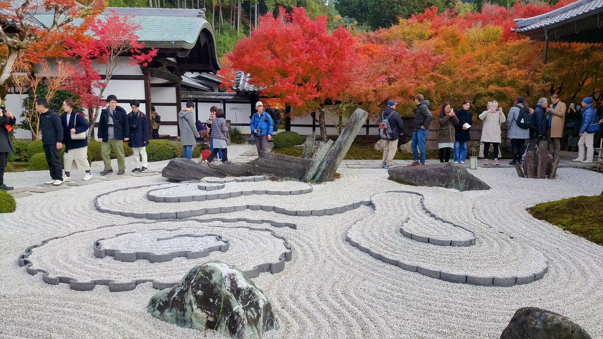 奔龍庭、平成の枯山水、十牛之庭、額縁庭園、ほほえみ地蔵、雨竹風竹図屏風と圓光寺は見どころが渋滞気味🍁お堂から見る紅葉庭園は引き込まれ暫く立つ事が出来なかった