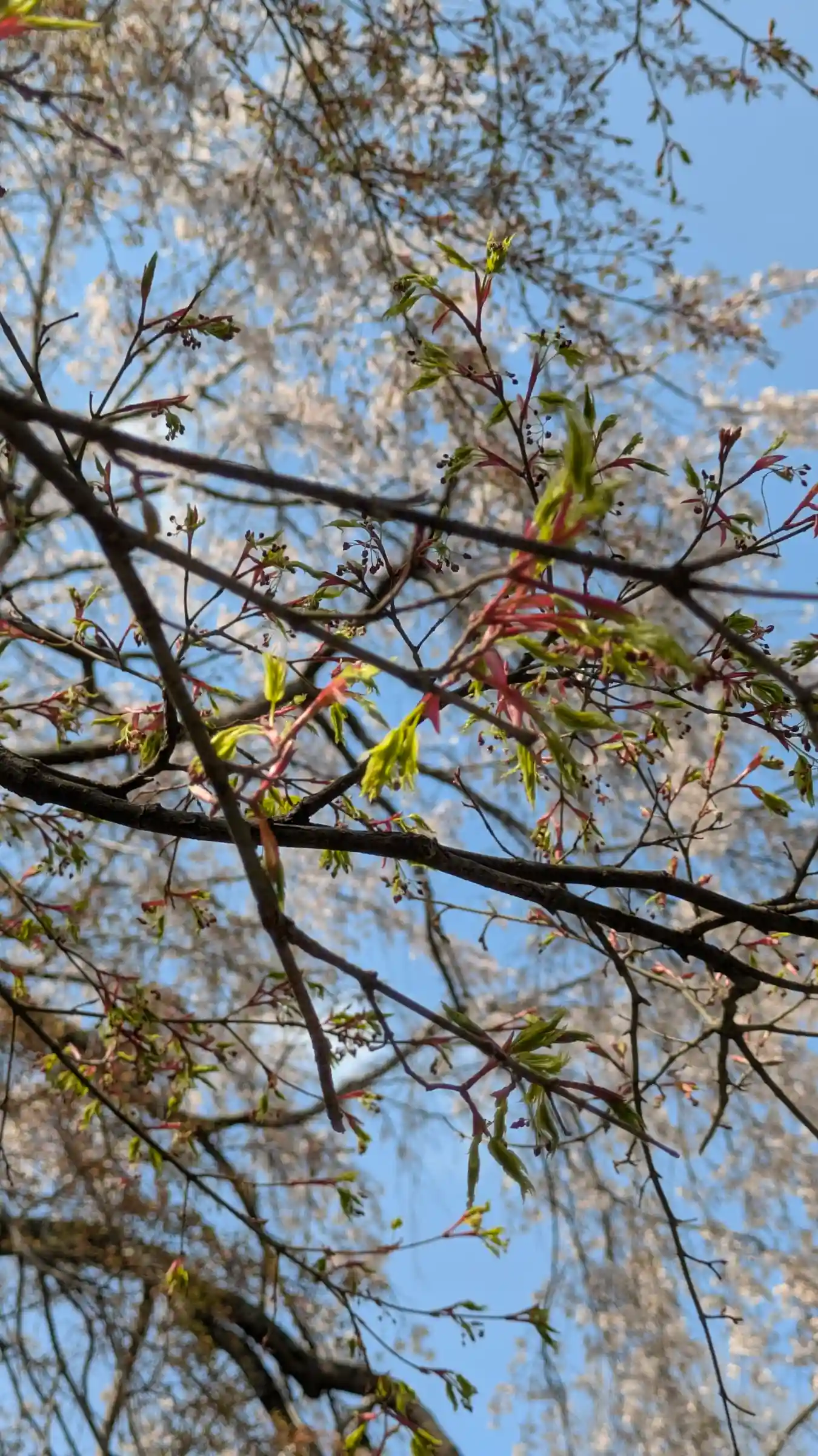 桜と楓。目立たないけど楓の花も今時分です😊