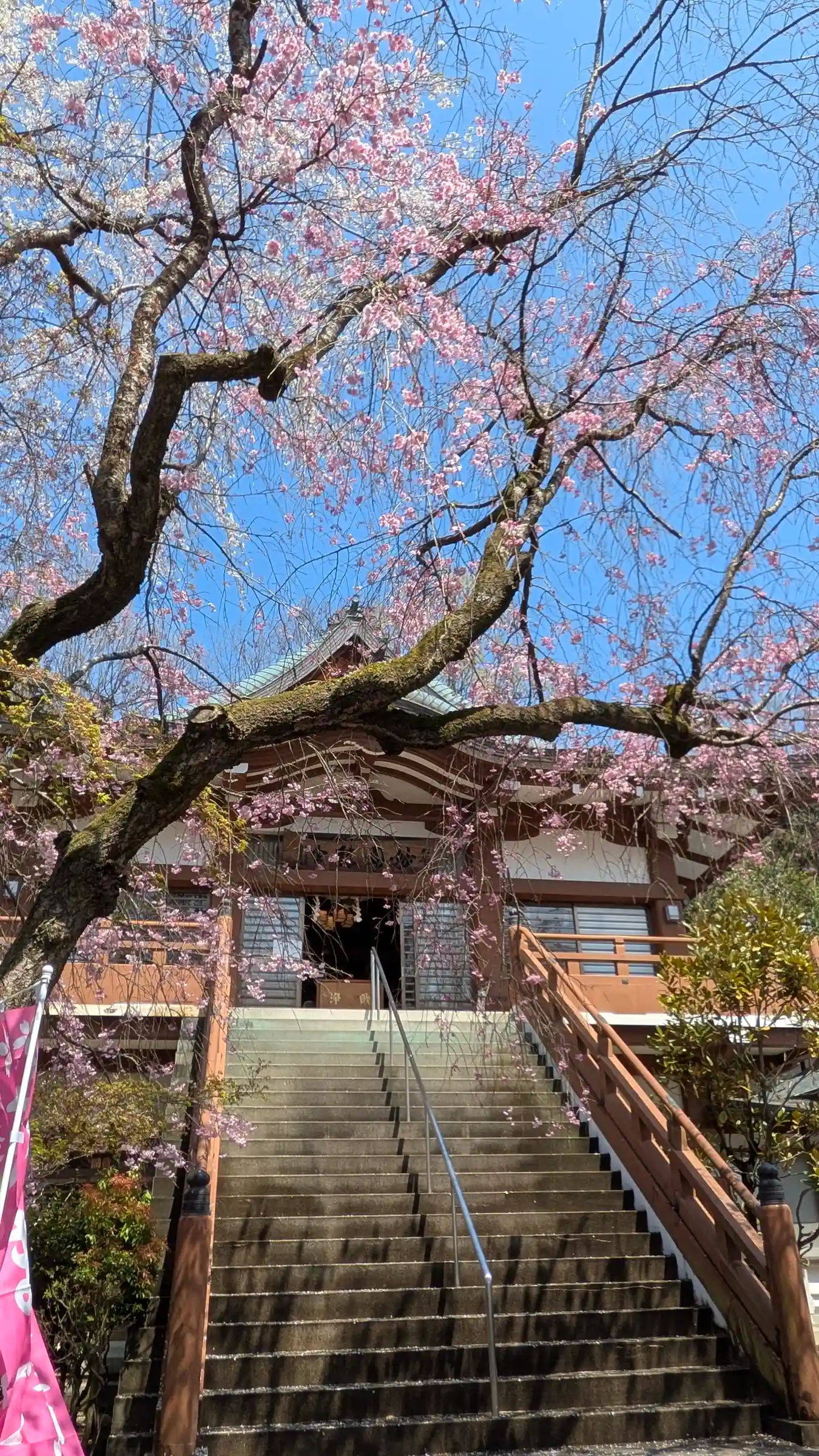 花まつりの御首題授与のため参拝。こちらの枝垂れも少しづつ開花進んできておりました🤗御首題は帳面お預…
