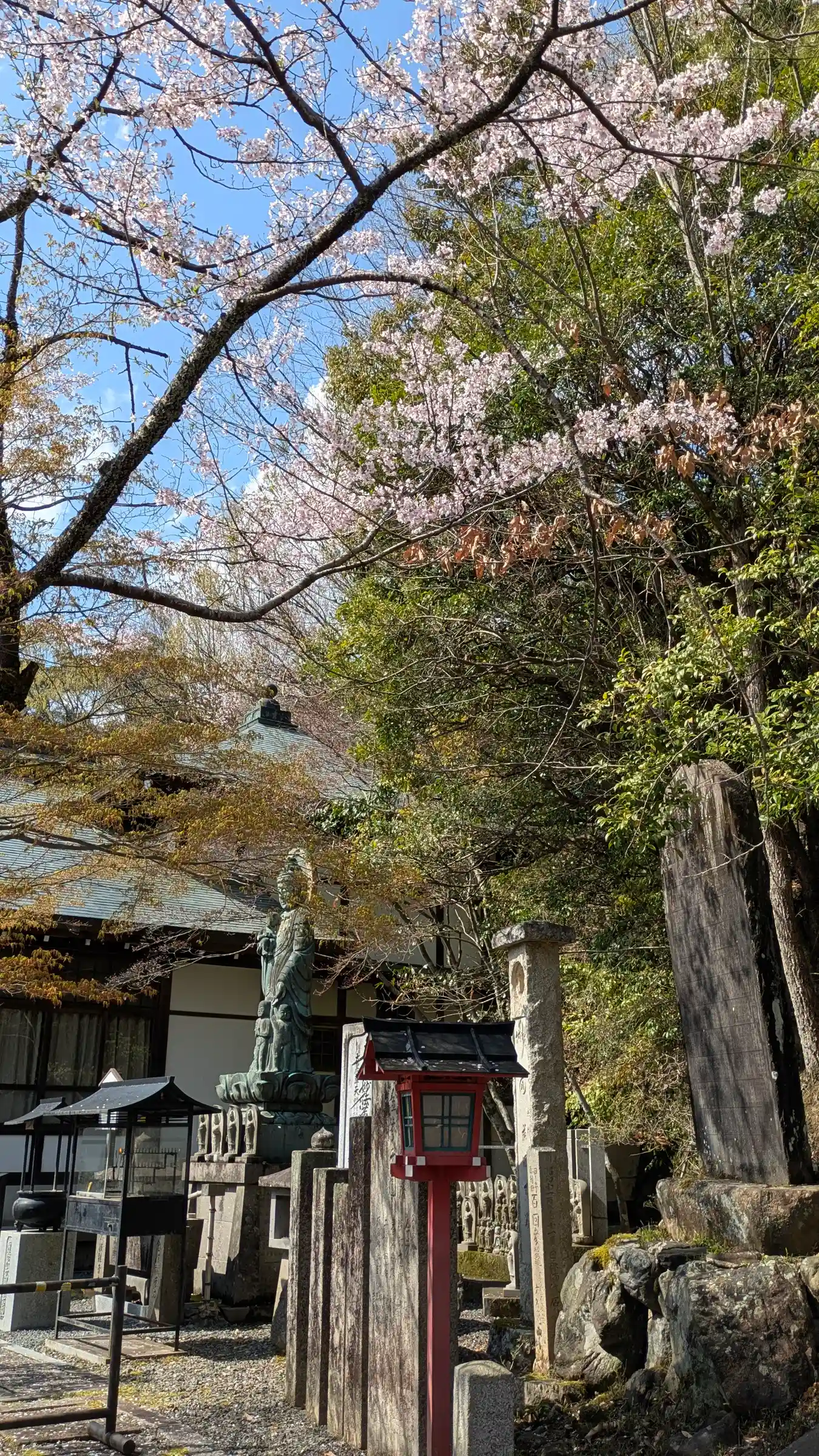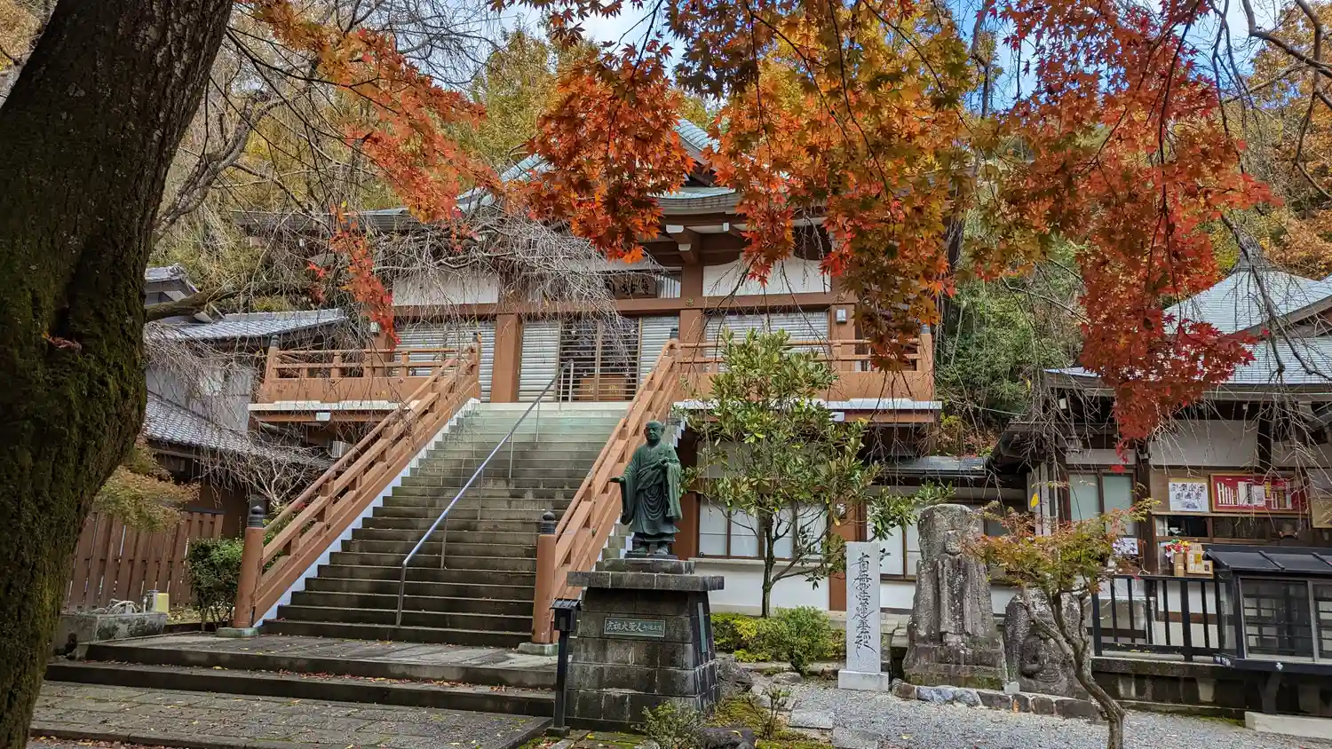 赤楓と桜、本堂