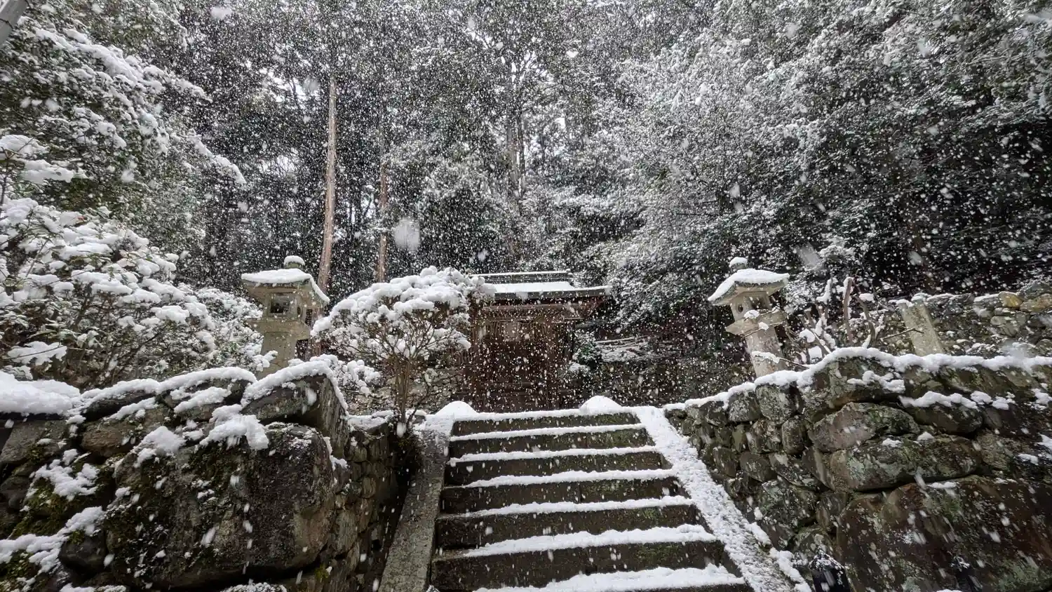 白雲稲荷社殿。雪すごくなってきた😅