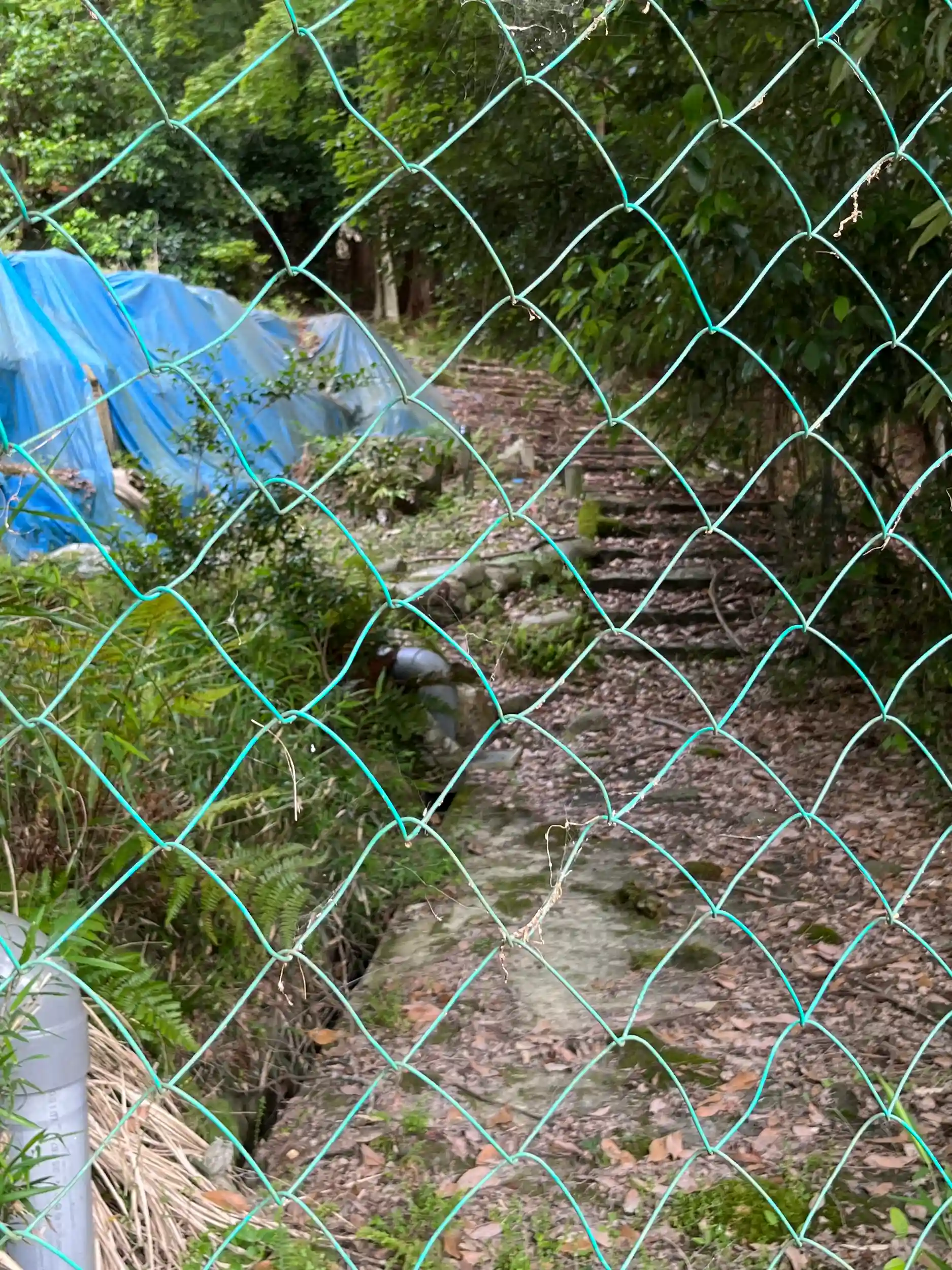 崩れた場所が、ブルーシートで覆われています。
