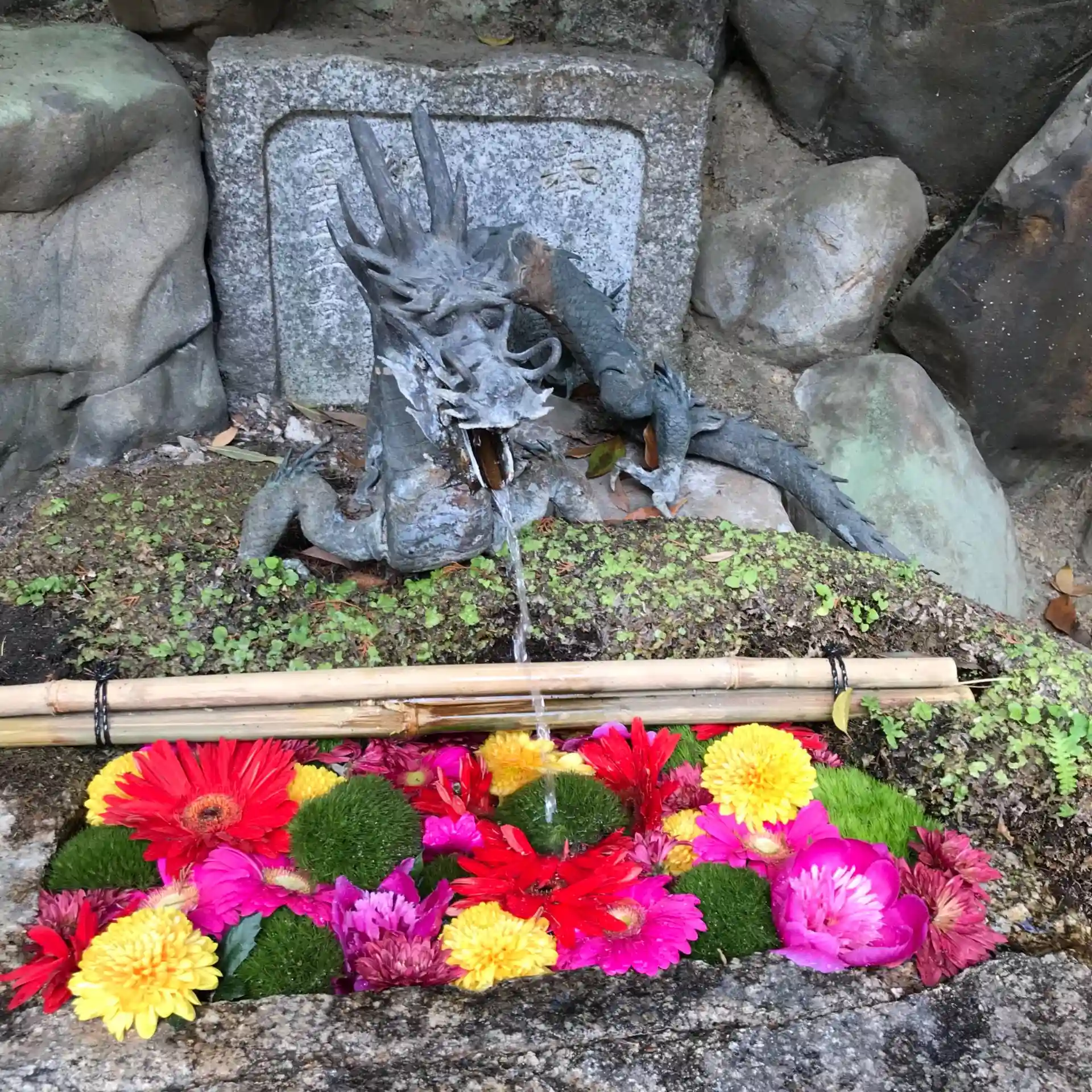 各種SNSでも発信されていますが、今回はガーベラ、芍薬、手鞠草、菊の花手水までありました。