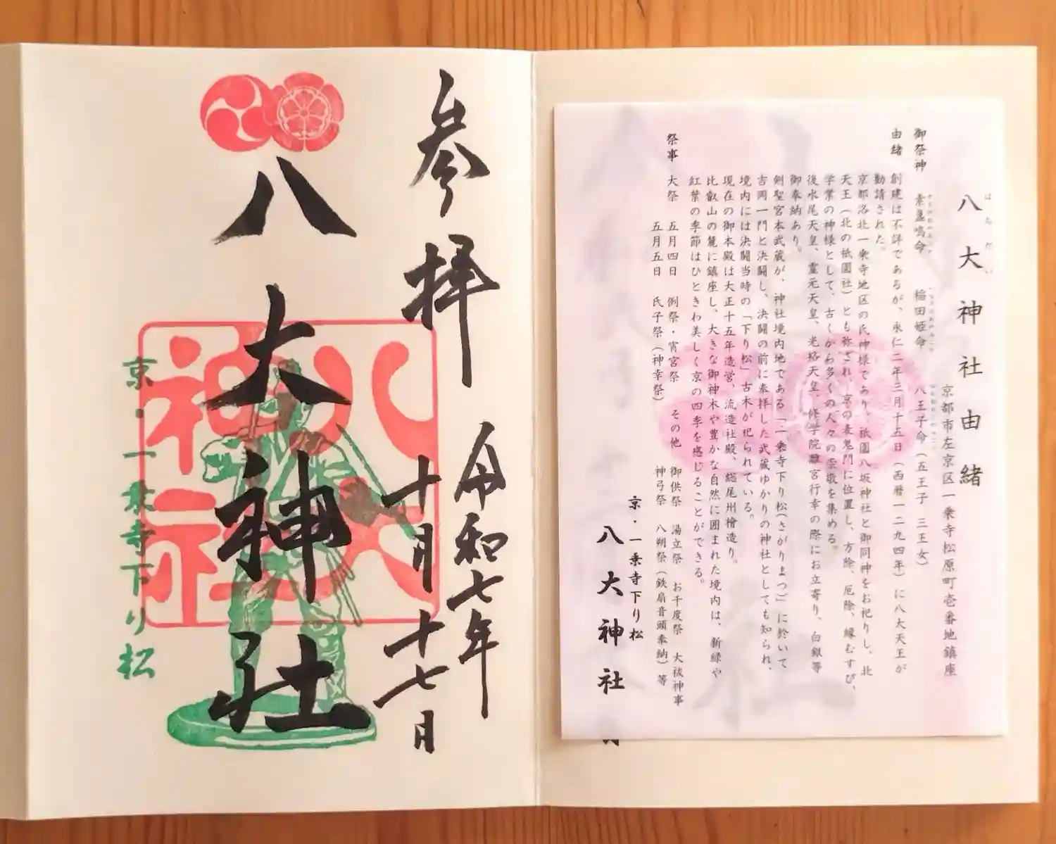 京都府の八大神社さんから、御朱印をいただきました。