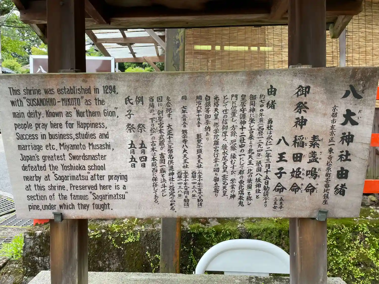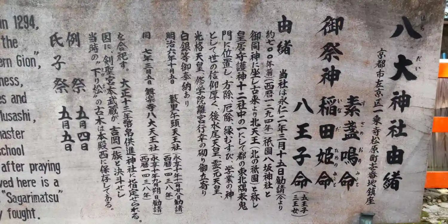 生涯敗れる事がなかったと言われる宮本武蔵。吉岡一門との決闘の前に奉拝した八大神社は、「必勝開運」の社