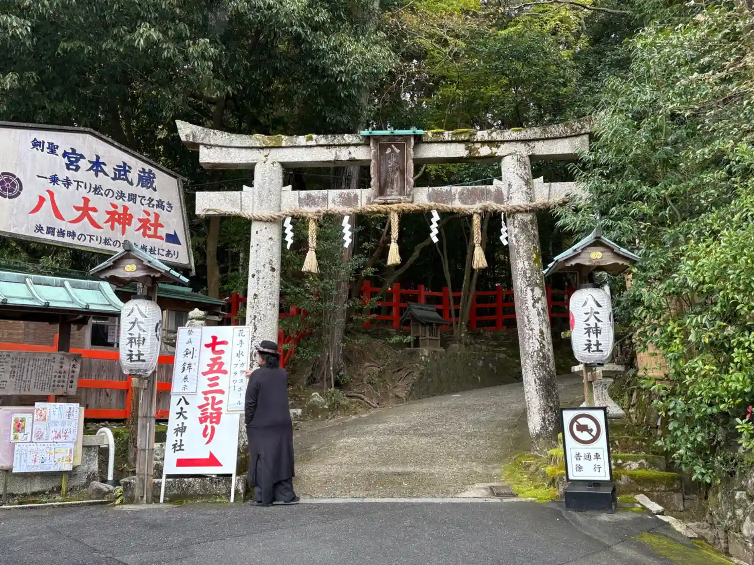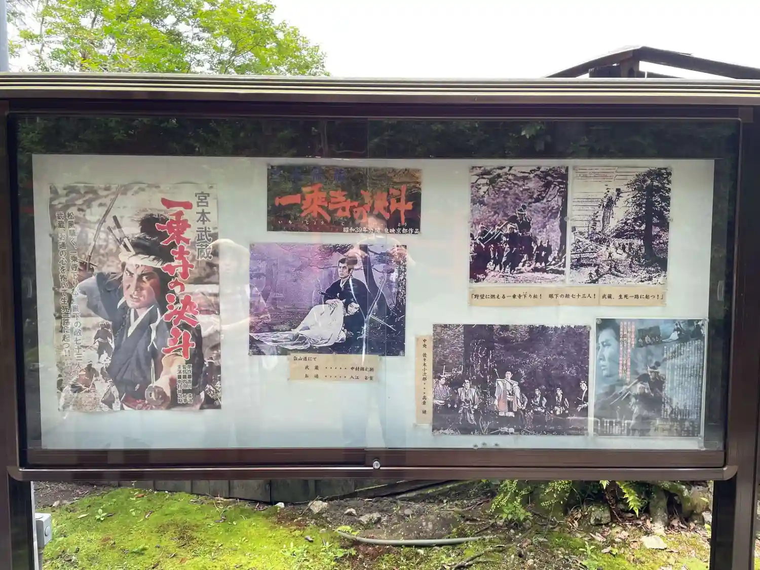 宮本武蔵ゆかりの八大神社へ。内田吐夢が監督した「一乗寺の決斗」のポスターやスチール、劇場用看板など…