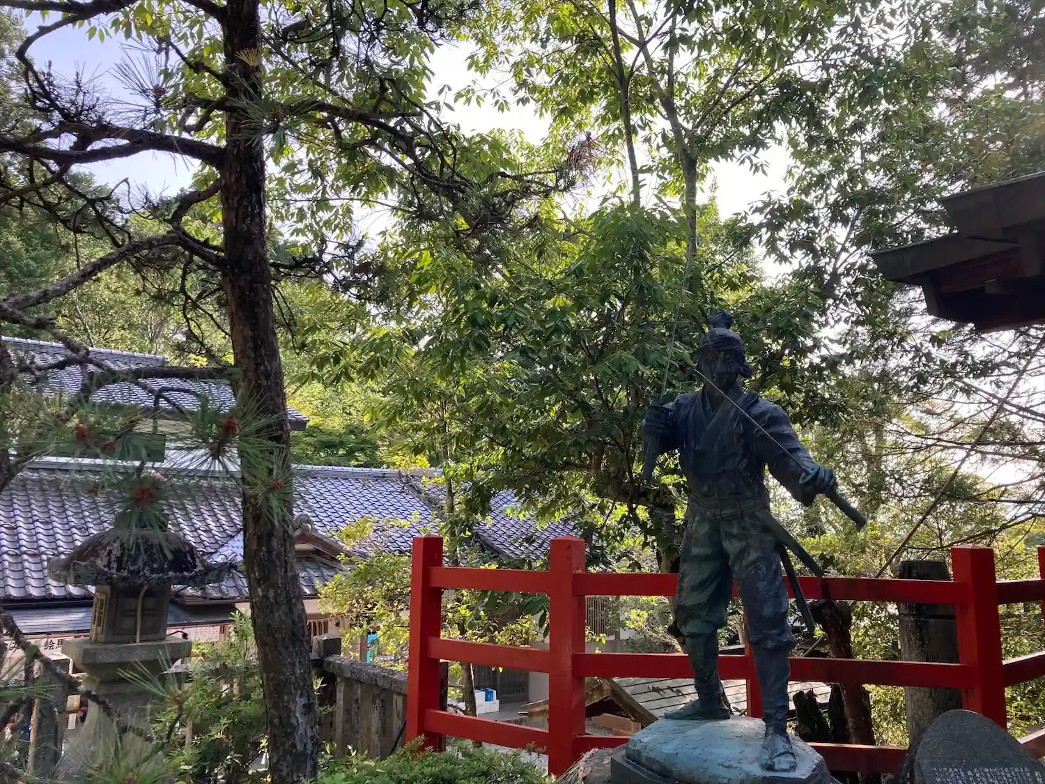 境内には宮本武蔵の銅像も。