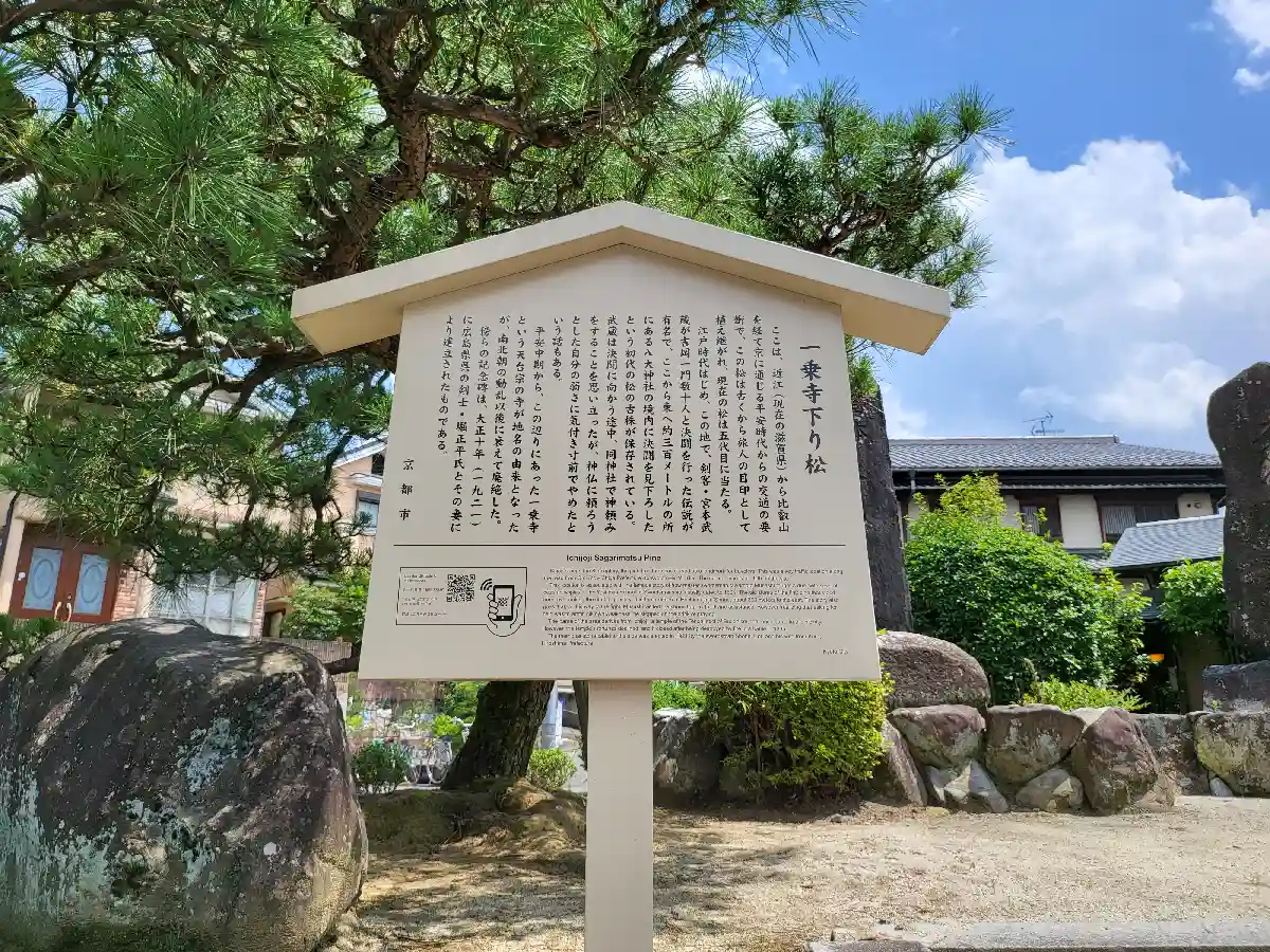かつて邦画の定番とされた「宮本武蔵一条寺下り松の決闘」の舞台となった場所が傍にあります。