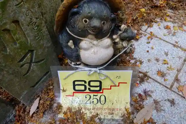 境内には5匹の「山伏狸」が居て、探すと大人はポストカード、子供はお菓子が頂けます。御朱印を頂いた際に4匹しか見つけられなかったと伝えると「せっかくだから」とヒントを教えて下さり、無事5匹見つける事が出来ました。