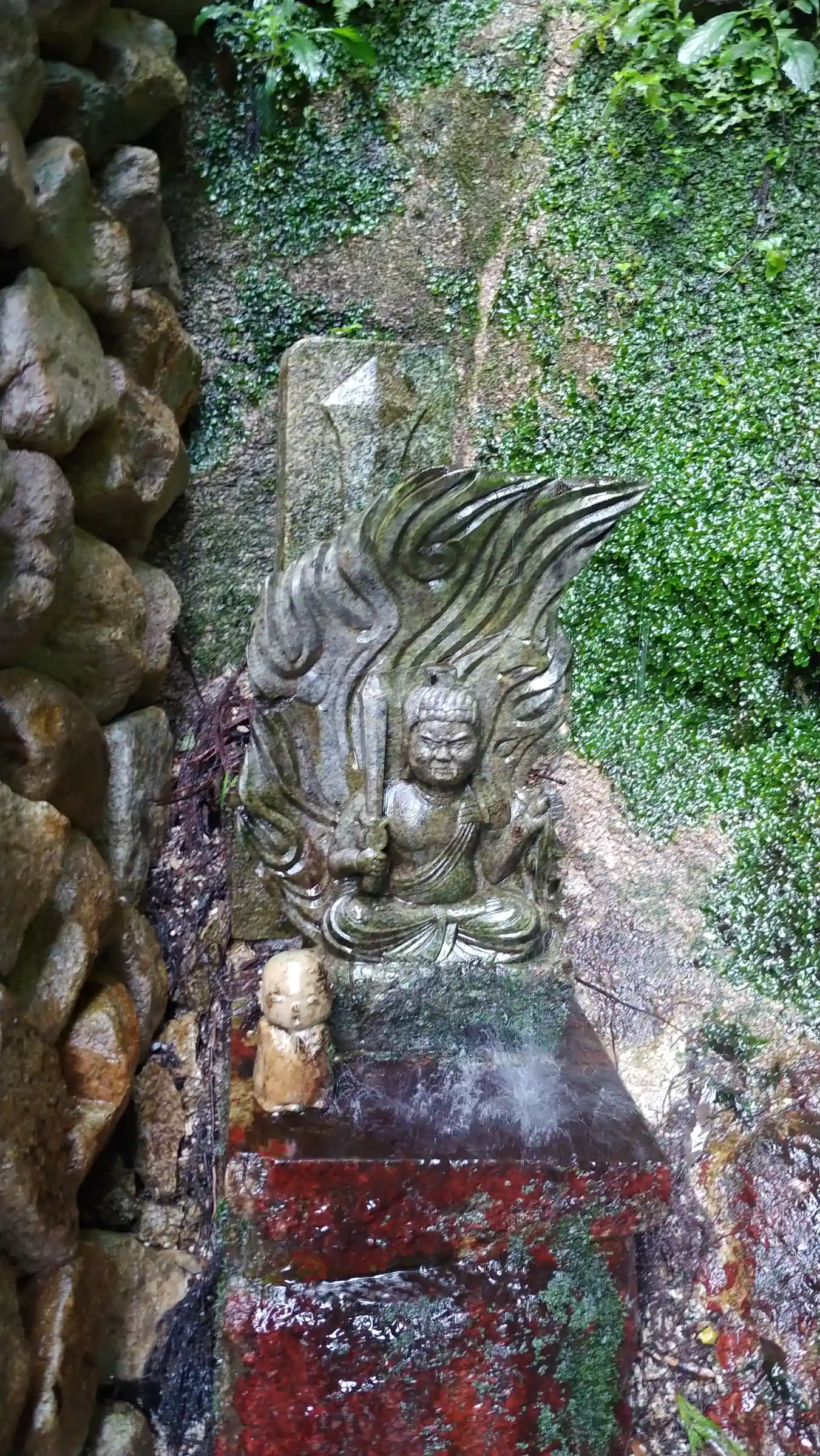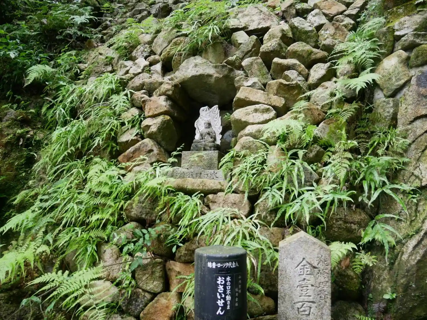 ガン封じの願がけがたくさん。この奥に特別拝観の洞窟内陣御不動明王。咜怒鬼でタヌキ。
