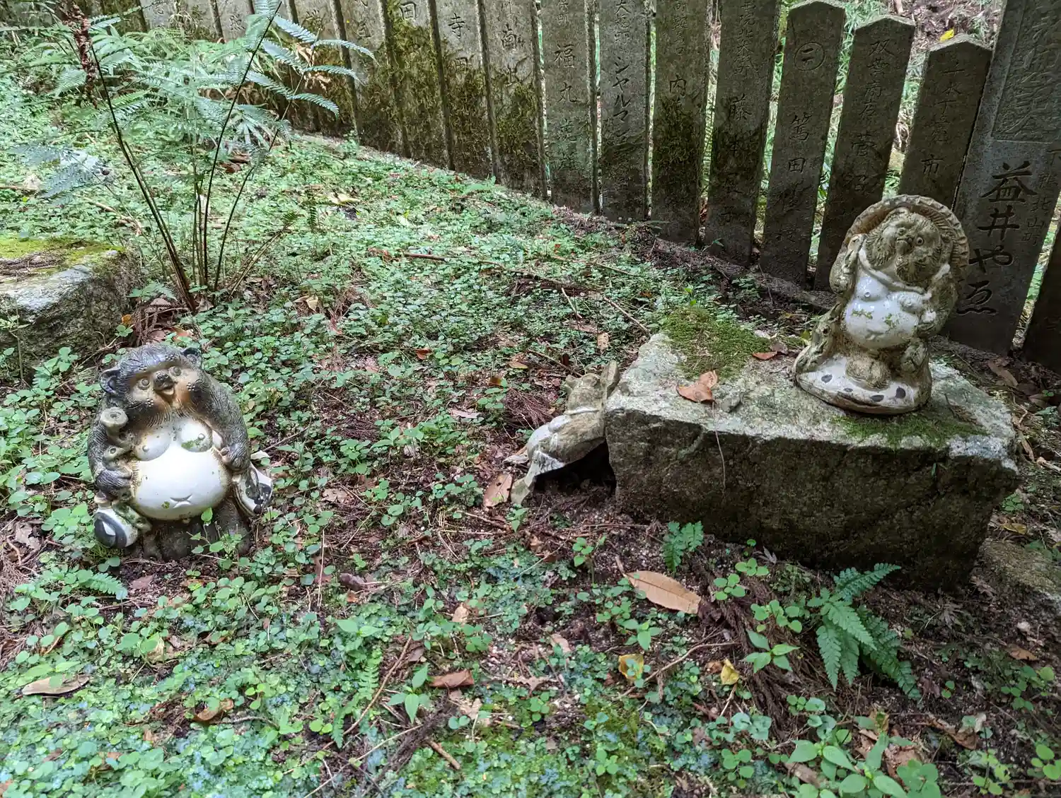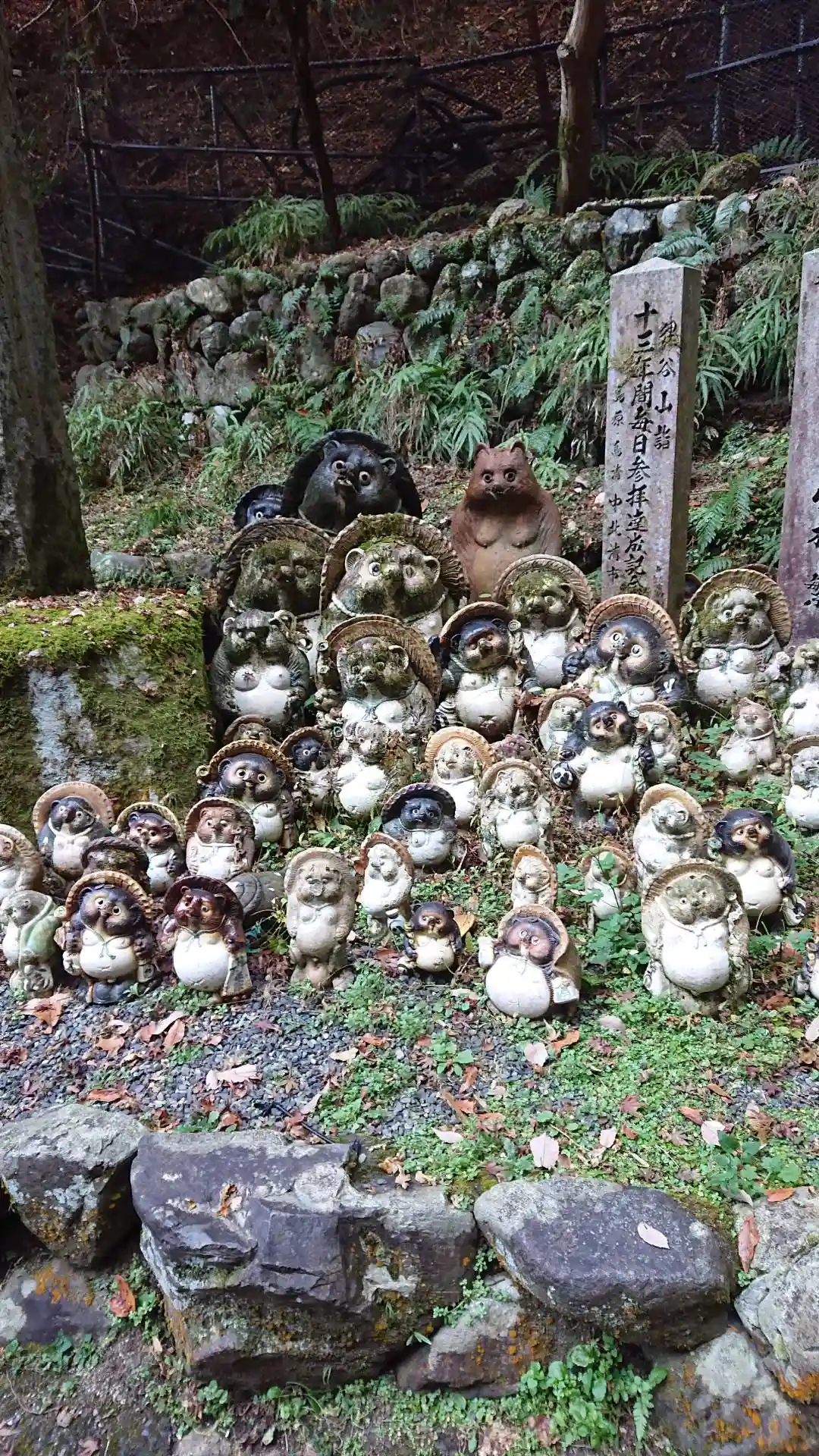 寺標とたぬきたち