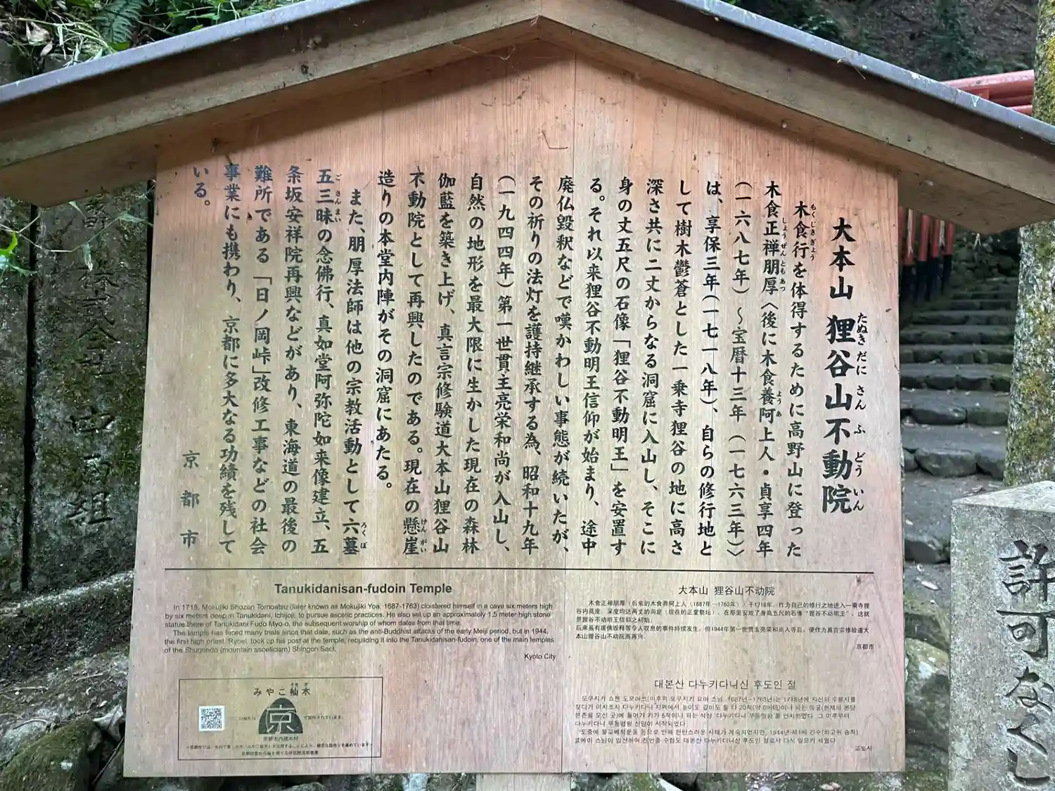 宮本武蔵「不動心」修行場、一乗狸谷山不動院。その後、武蔵の伝承を聞いた僧による創建。