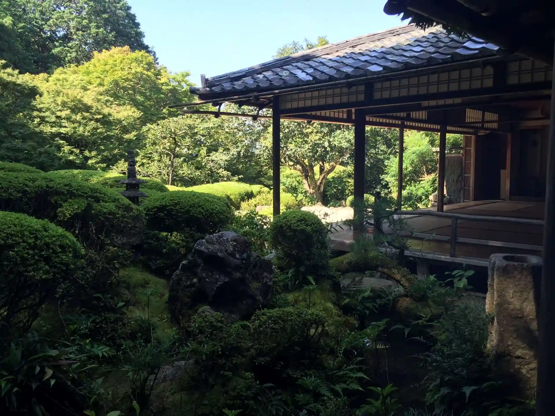 花の季節ではないが、サツキの植え込み、手入れの行き届いた庭が見事である。