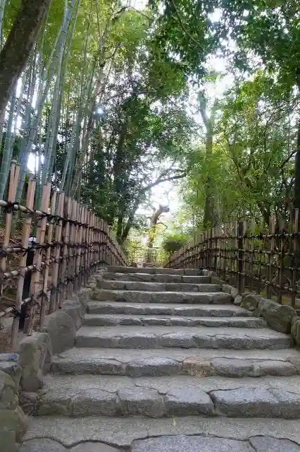竹林に挟まれた木漏れ日の注ぐ石段