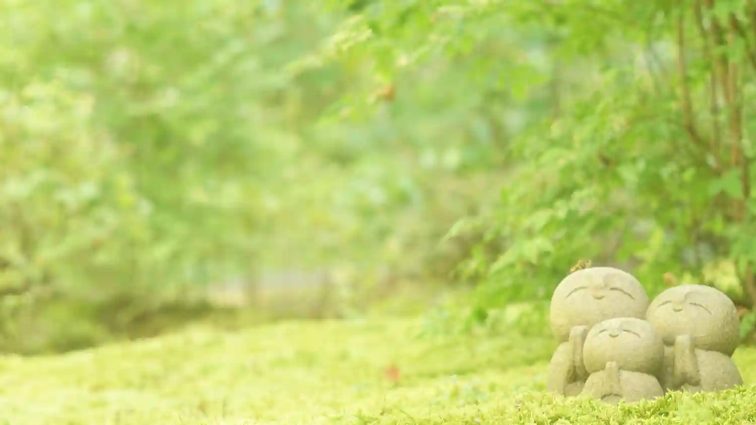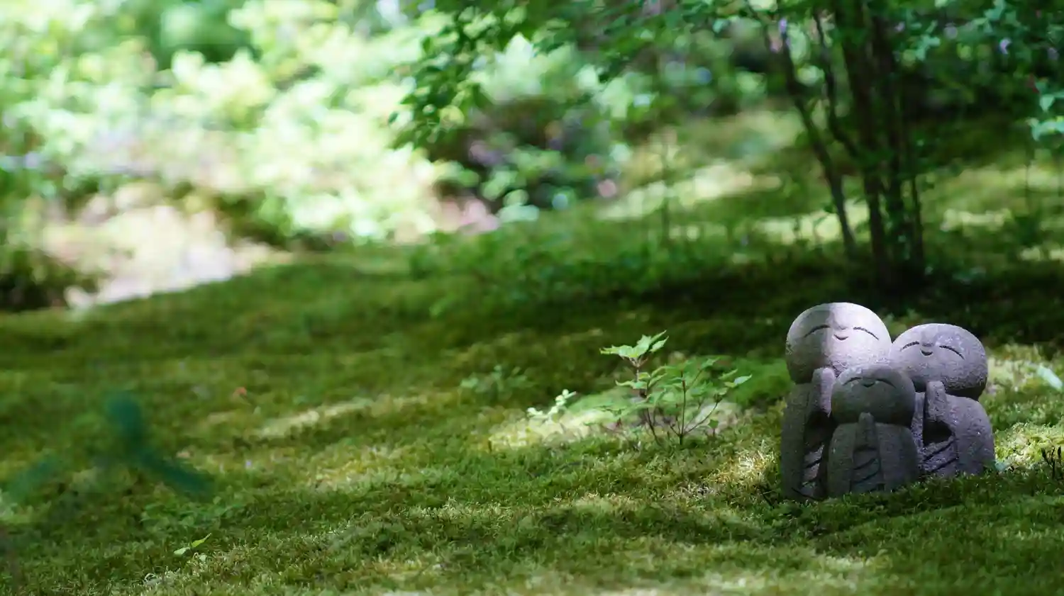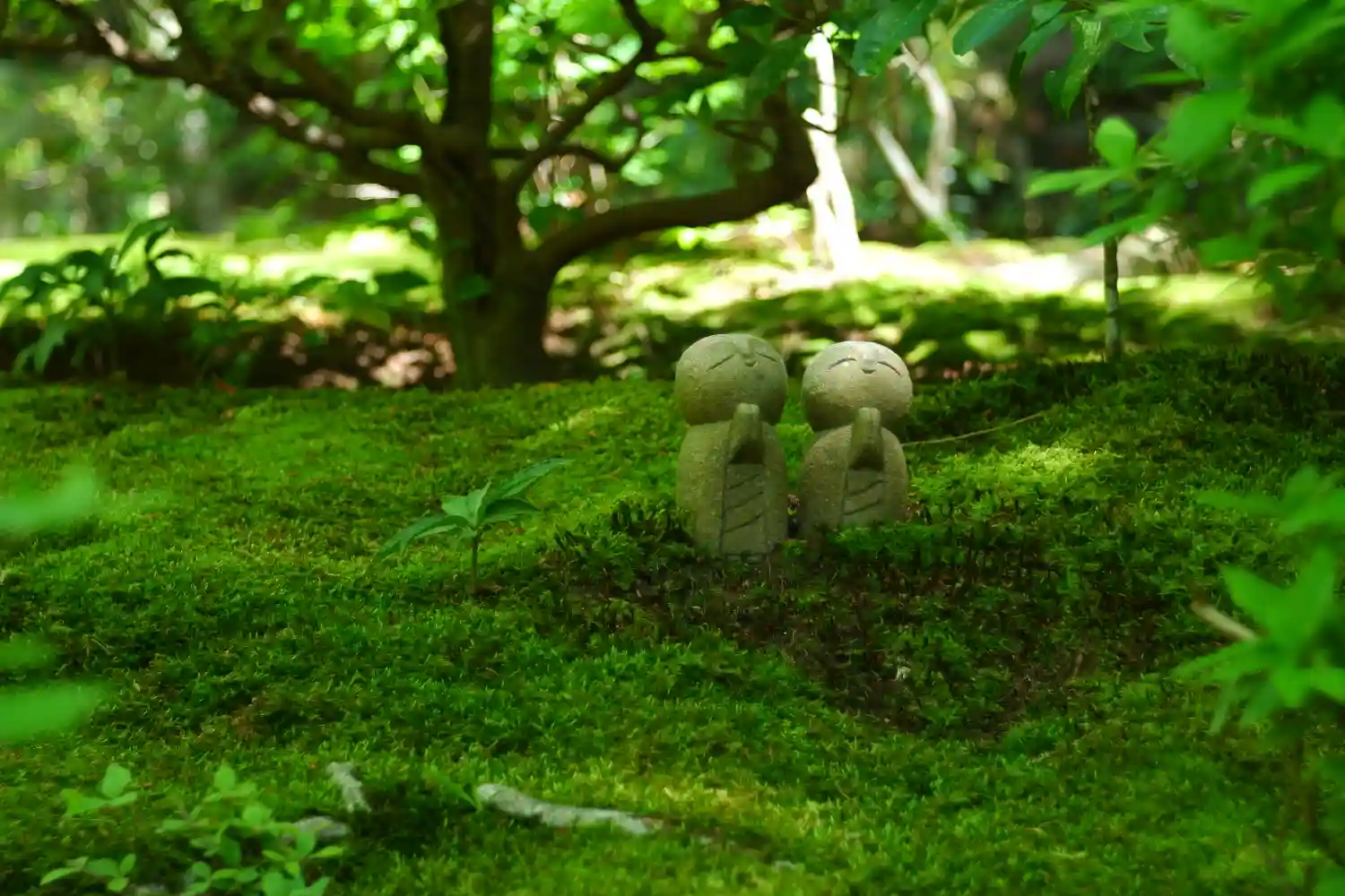 入口に入り、お庭の向こうに可愛いお地蔵さんが何体かいます