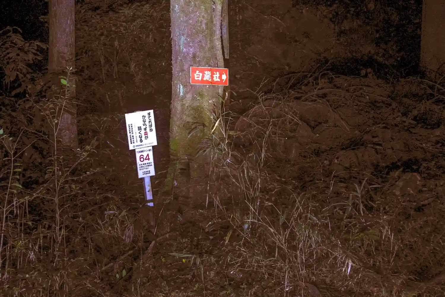 稲荷山中腹の四ツ辻裏側の白瀧社への降り口。