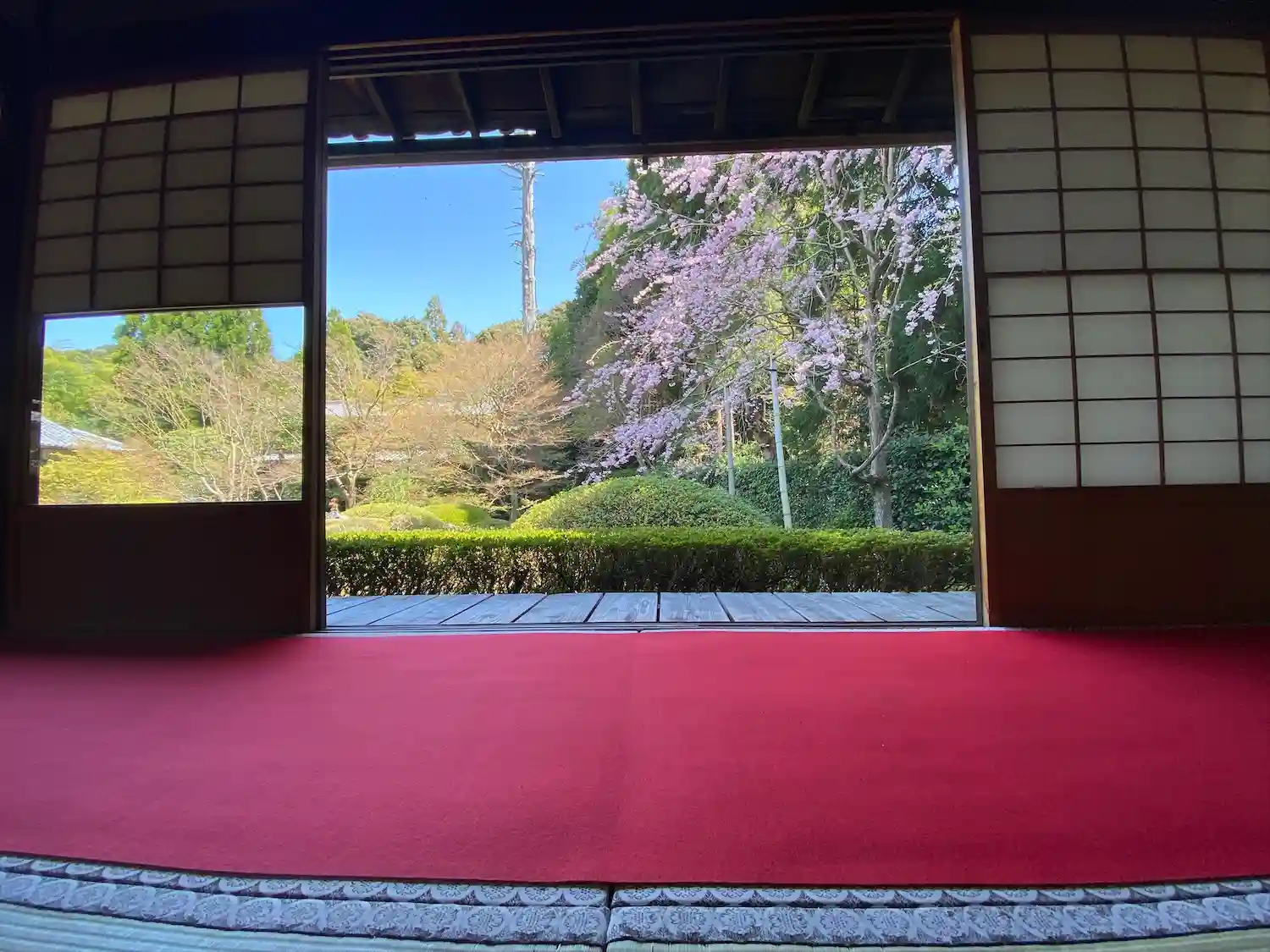 蓮華の間。しきしの景色。ここで見るといいですよ、とお座布団が敷いてありました。