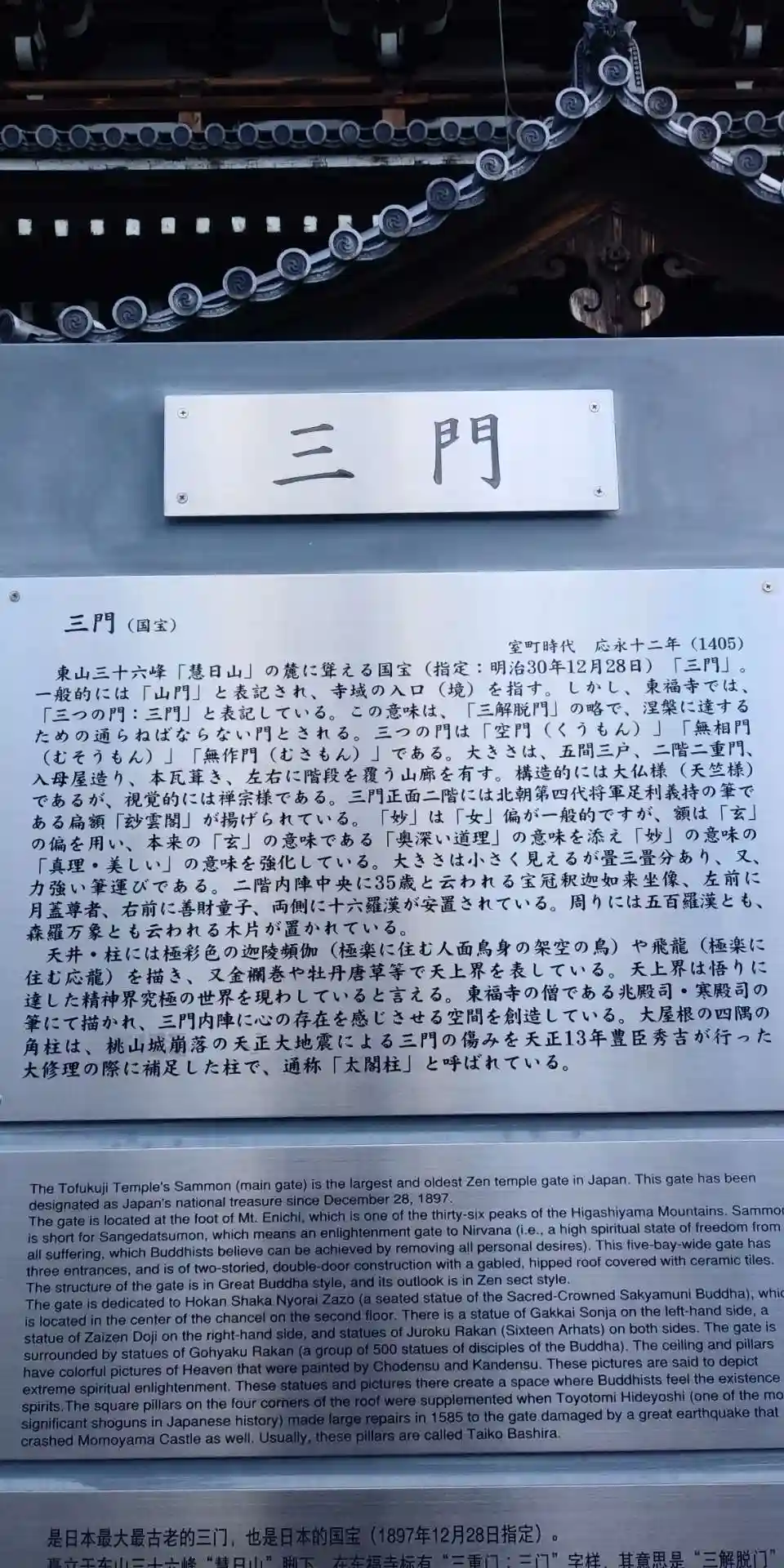 特別公開で三門の中に入れました!(東福寺では、山門ではなく三門と書くそうです)